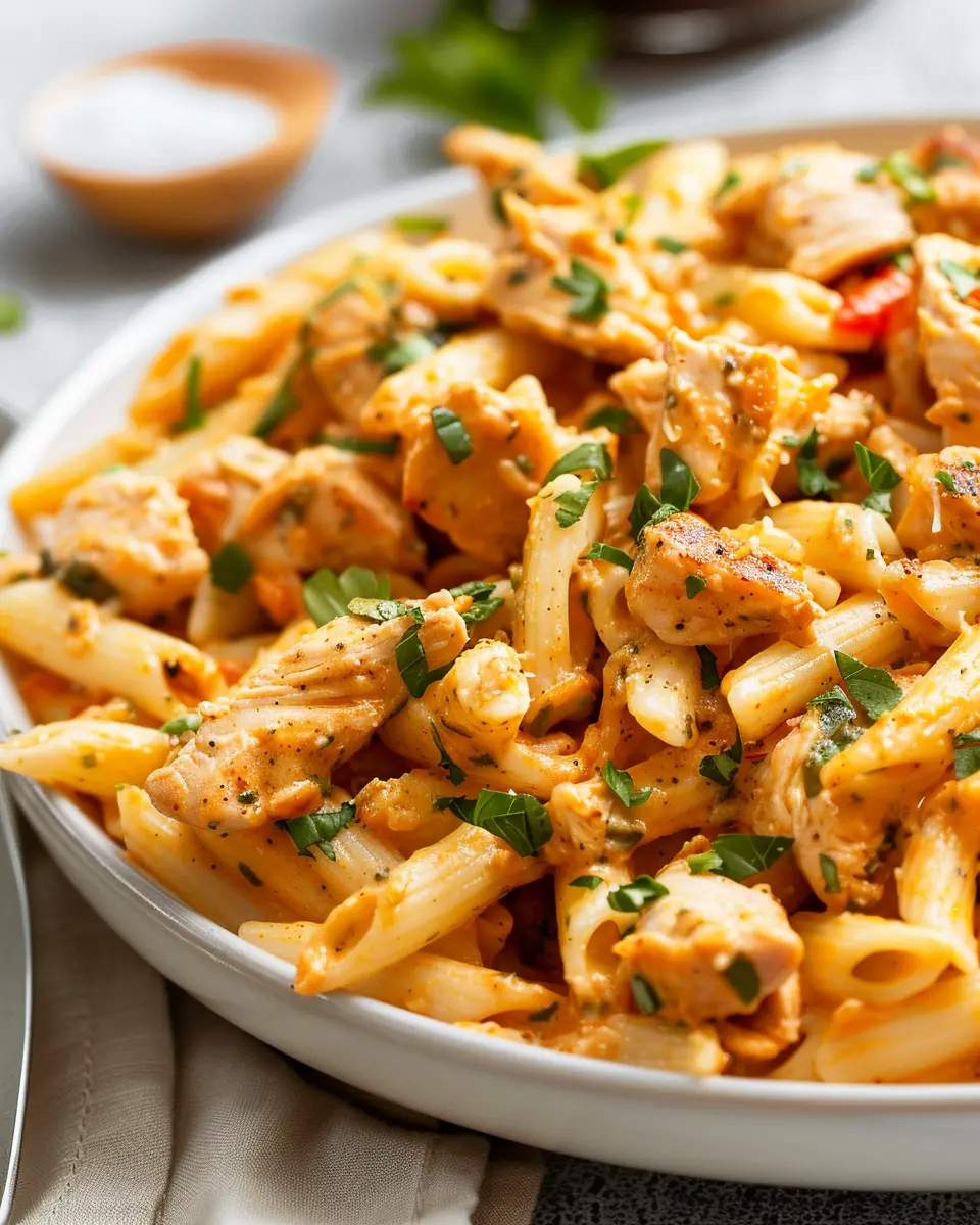 Finally, garnish with freshly chopped parsley for a vibrant touch. Serve your Air Fryer Cajun Chicken Pasta immediately for the best flavor and aroma.
