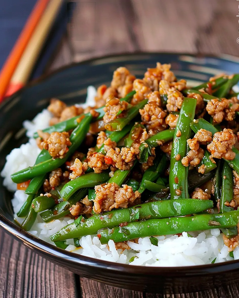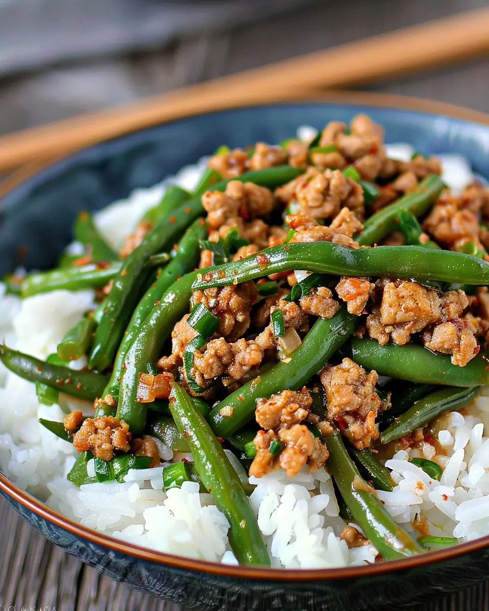 A delicious and easy recipe for Asian Ground Turkey with Green Beans and Rice, perfect for weeknight dinners.