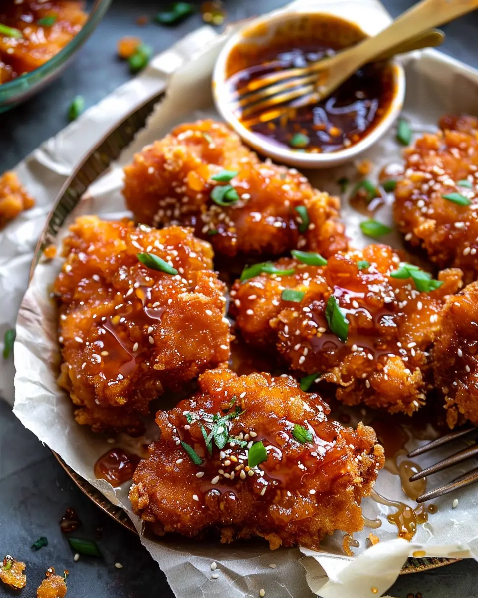 For a different take, consider a sweet and tangy BBQ version. Substitute the hot honey with a smoky BBQ sauce and add a splash of apple cider vinegar for that tangy finish. This approach beautifully combines the crunchiness of the chicken with the rich, savory notes of BBQ, perfect for a casual weeknight dinner or a backyard barbecue. If you’re interested in exploring the art of barbecue sauce, check out this article from BBQ & Grilling.