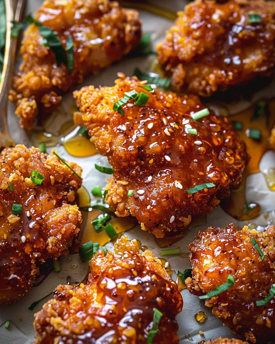 This Baked Crunchy Hot Honey Chicken is a delicious twist on classic fried chicken, combining a crispy coating with a sweet and spicy honey glaze.
