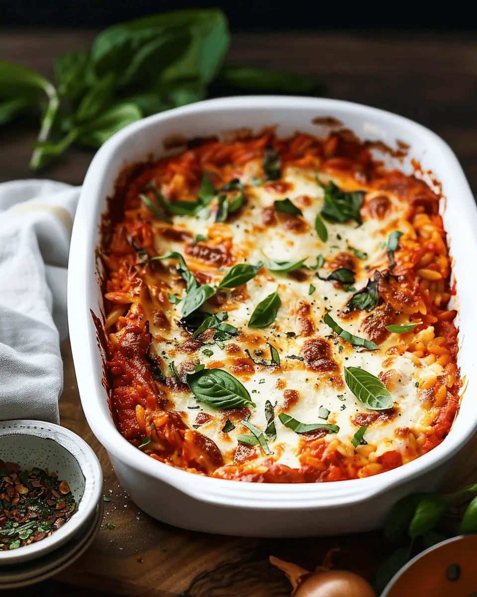 Once it’s ready, let it cool for a few minutes before serving. Top it off with a sprinkle of fresh herbs or a drizzle of olive oil for that gourmet touch. Enjoy your delicious homemade baked orzo pasta—it’s an easy dish that never fails to impress your family or friends! To store leftovers, consider reading about proper storage techniques here.