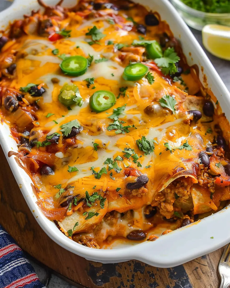 The Beef Enchilada Casserole is more than just a meal; it’s an invitation to gather around the table and share moments with friends and family. Its layers of flavor—rich beef, melty cheese, and tangy enchilada sauce—work together to create a comforting dish that feels nostalgic yet modern.
