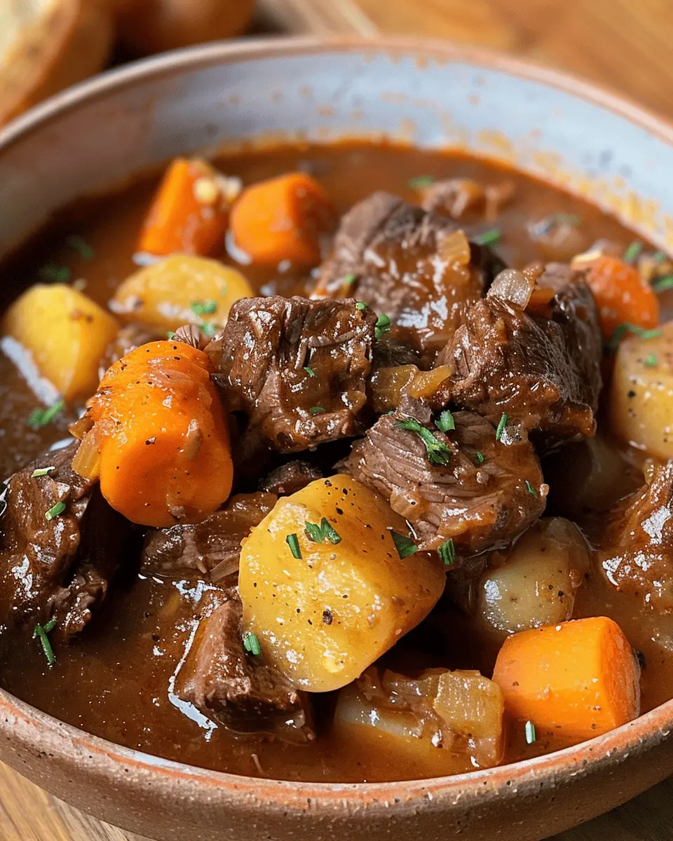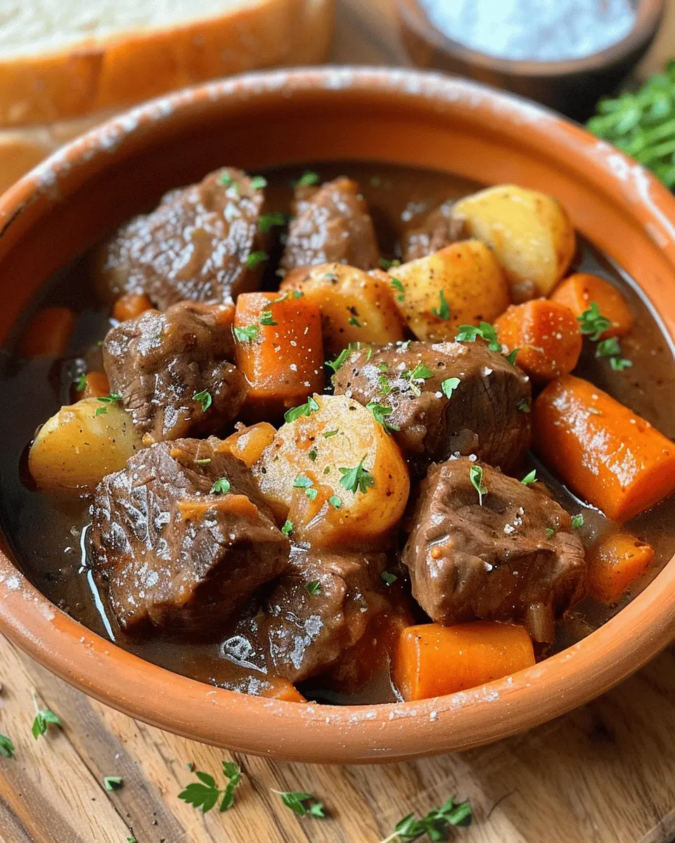 Serve your hearty beef stew with carrots and potatoes in bowls, garnished with fresh herbs like parsley for a pop of color. This dish not only nourishes the body but also warms the soul. Ready to dig in? Your perfect stew awaits!
