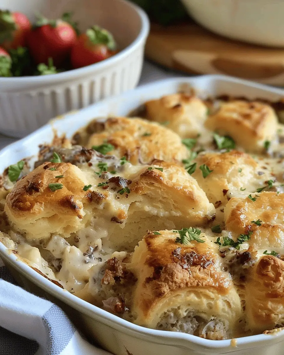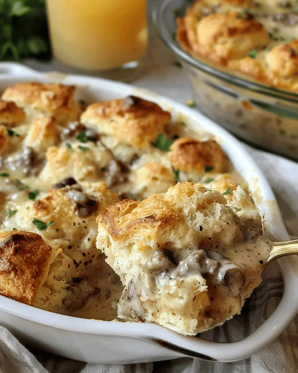In summary, biscuits and gravy casserole embodies comfort food at its finest. This dish is the perfect blend of flaky biscuits, savory sausage, and creamy gravy, making it an irresistible option for brunch or an easy weeknight dinner. Whether you’re a food lover seeking new flavors or simply craving a cozy bite, this casserole is sure to satisfy.