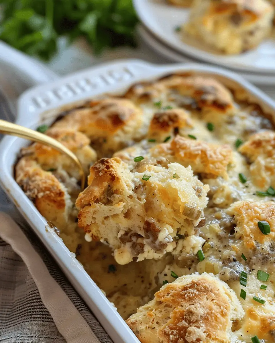Imagine waking up on a Saturday morning with a craving for something delicious, yet knowing you have a million things to do. This casserole can be prepared the night before, allowing you to pop it in the oven while you get ready to tackle your to-do list. Not only does it save time, but you can also feed a crowd easily, making it ideal for brunches or cozy get-togethers. Plus, who doesn’t love the allure of flaky biscuits complemented by creamy, savory gravy?
