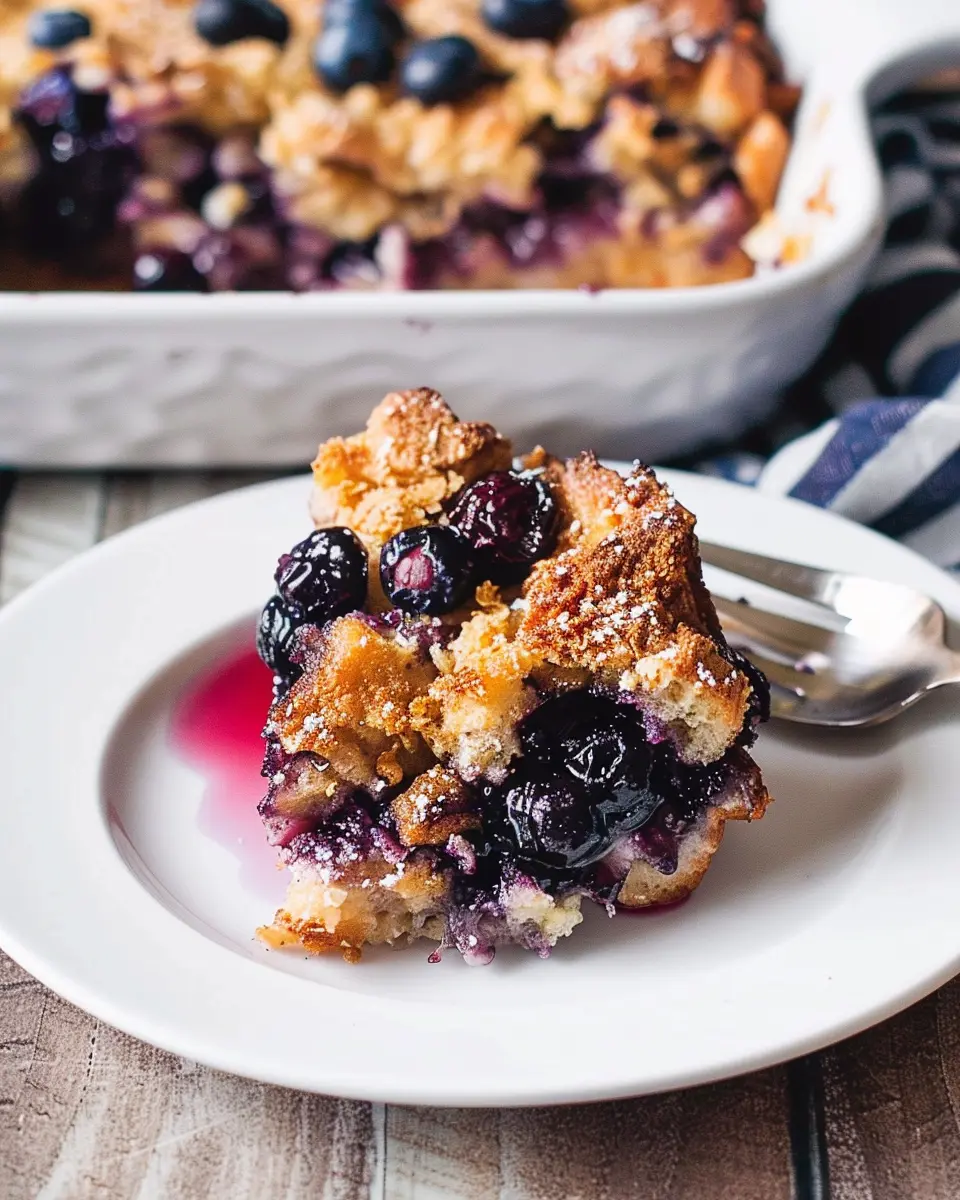 And there you have it—a blueberry French toast casserole that’s not just easy to prepare but also packed with flavors that everyone will love! Enjoy serving this dish at your next brunch; it’s bound to become a favorite. If you’re looking for other delicious variations, consider adding nuts or swapping out the blueberries for strawberries or raspberries!