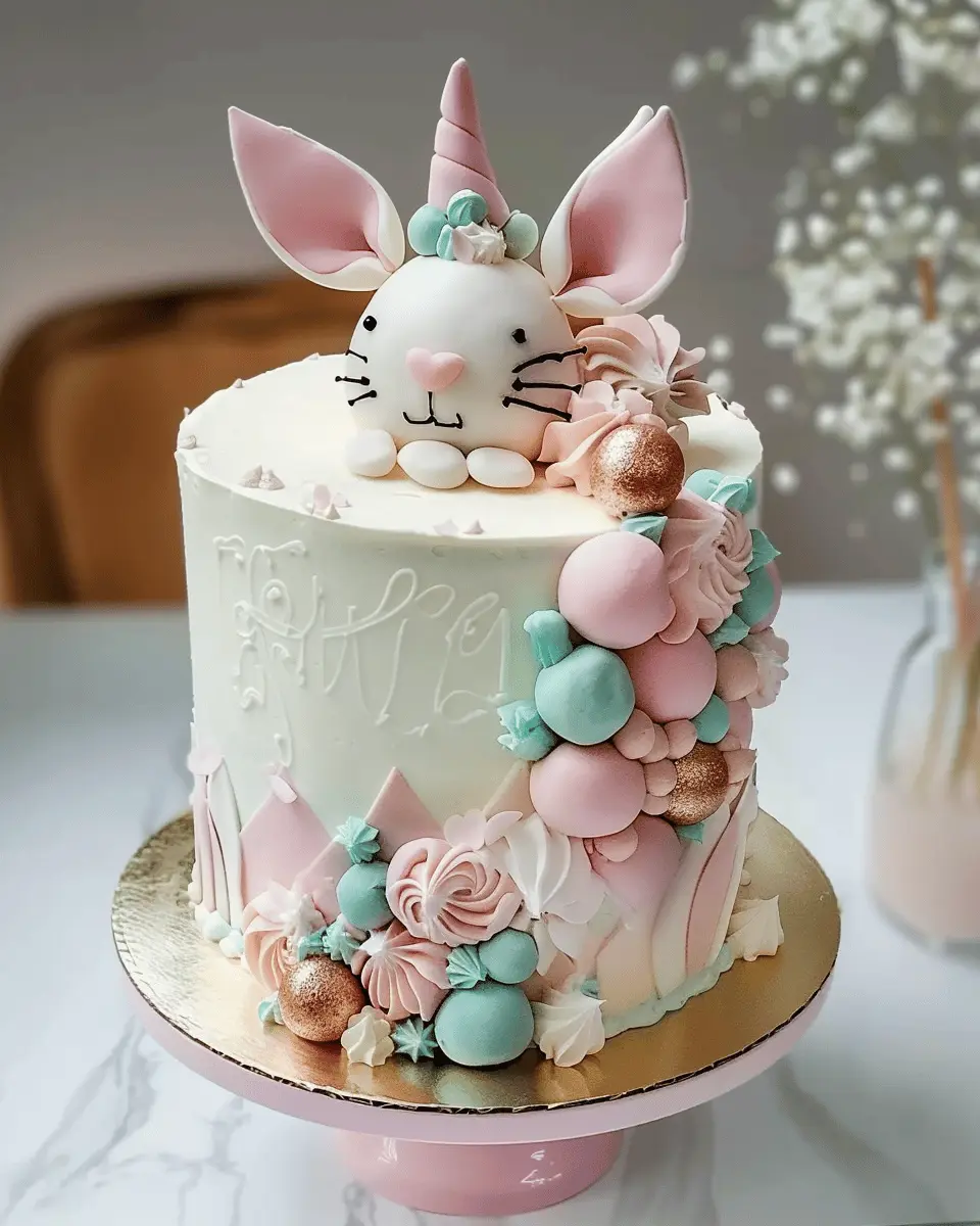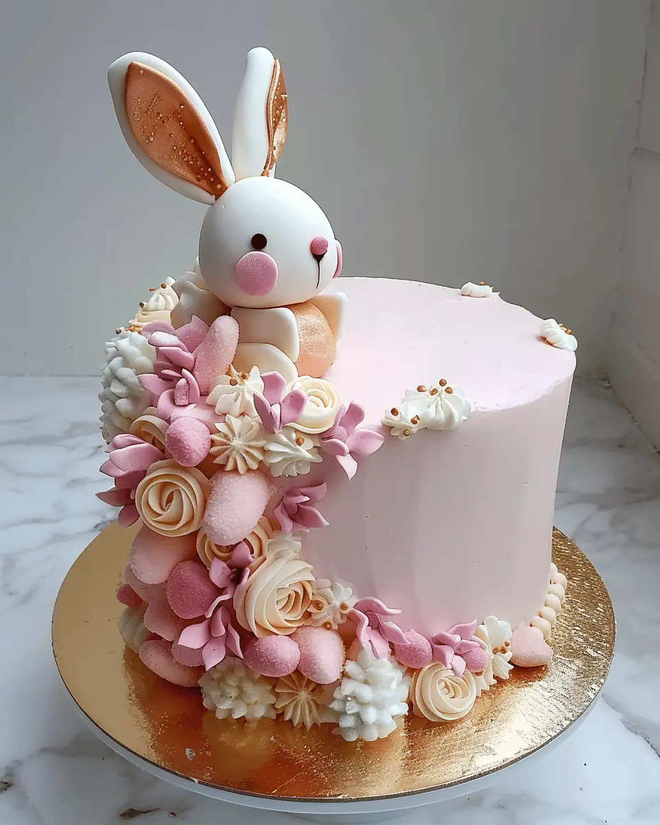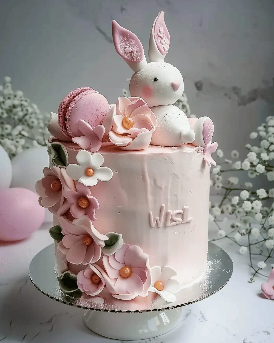 - Themes Galore: Bunny cakes can be adorned with pastel colors, floral decorations, or even whimsical touches like candy eggs and edible glitter.