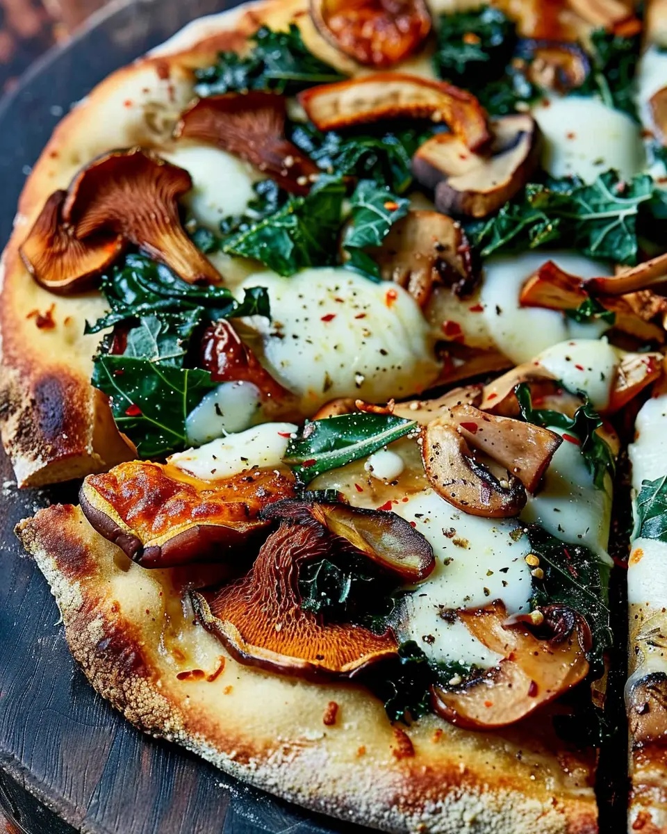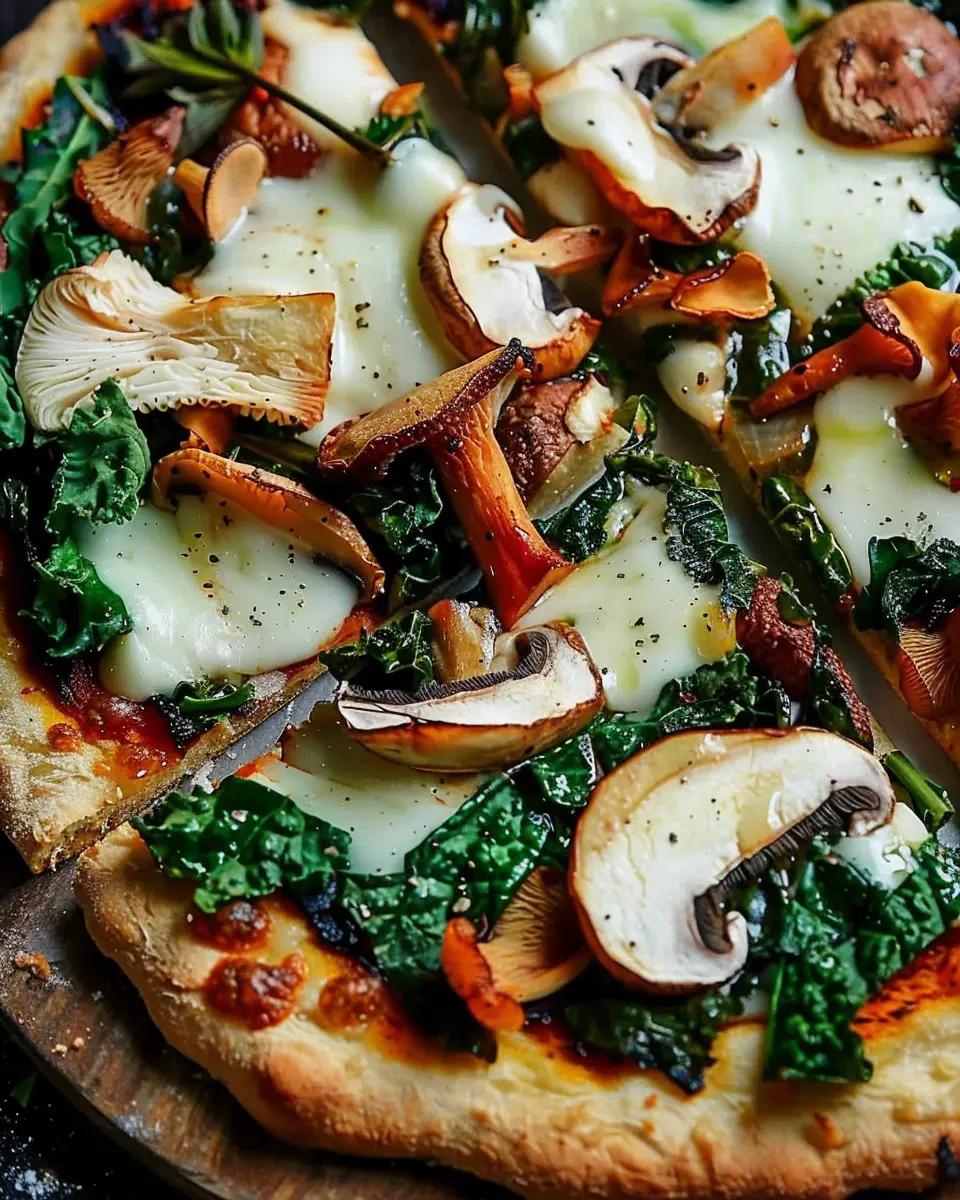 Once done, remove the pizza from the oven and let it cool for a minute or so. Slice it up and enjoy your homemade Chanterelle Mushroom and Kale Pizza. This dish not only satisfies your taste buds but also gives you a nutritious boost—perfect for a busy weeknight!