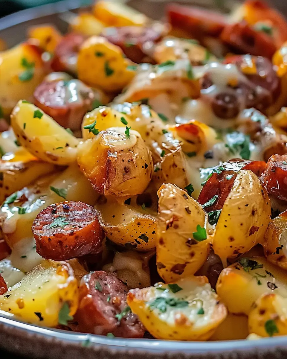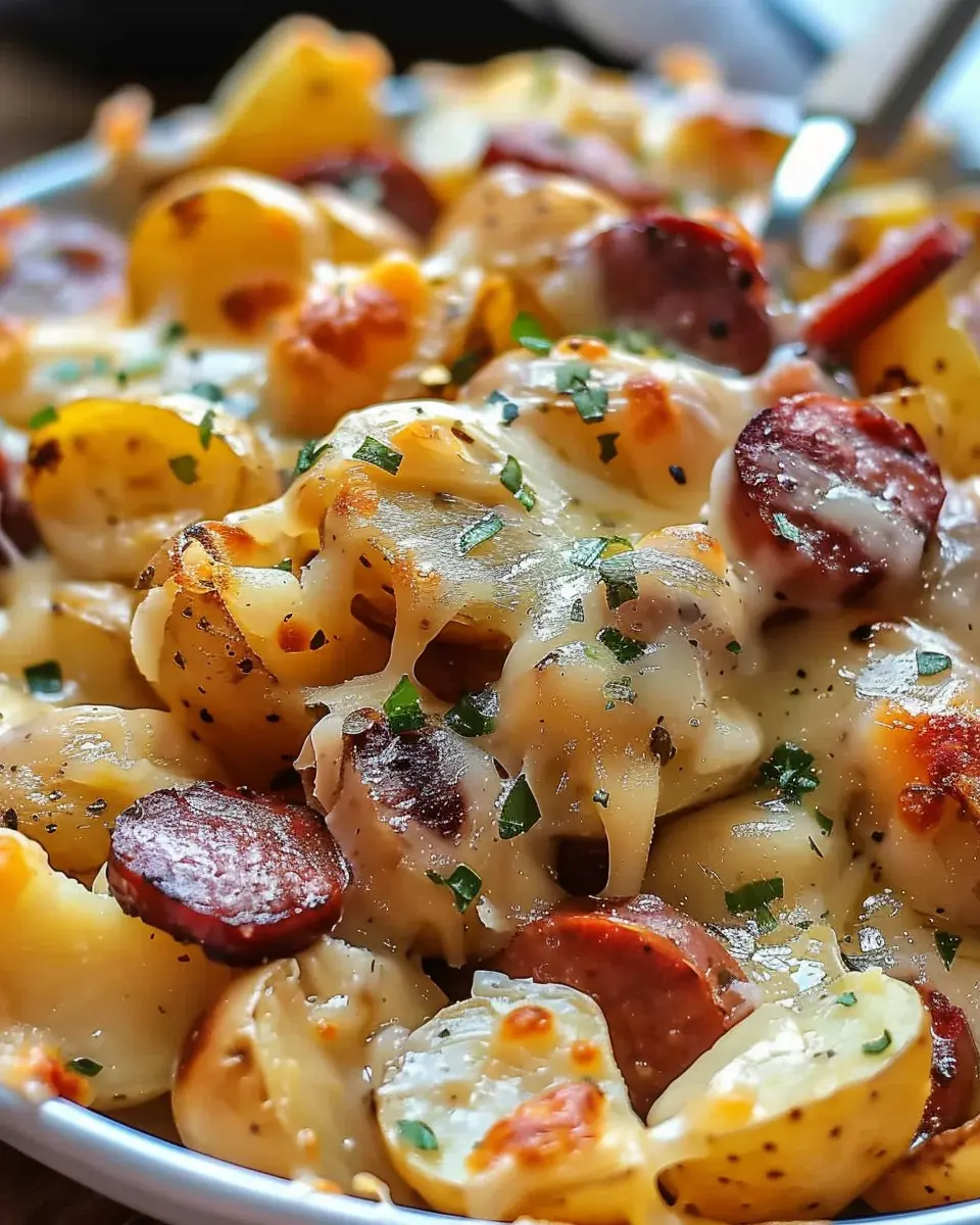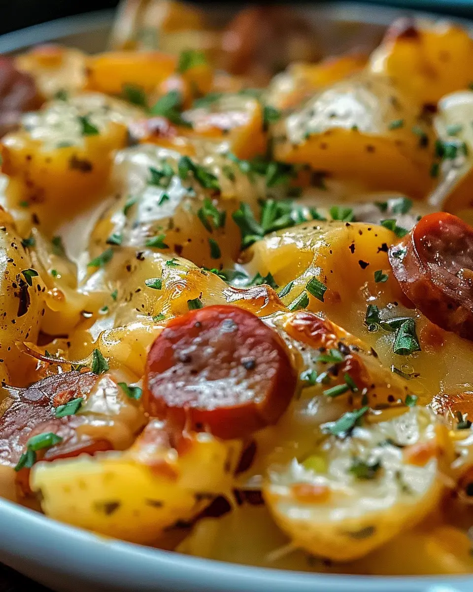 Keywords: Cheesy Ranch Potatoes, Smoked Sausage, Comfort Food, Easy Recipes