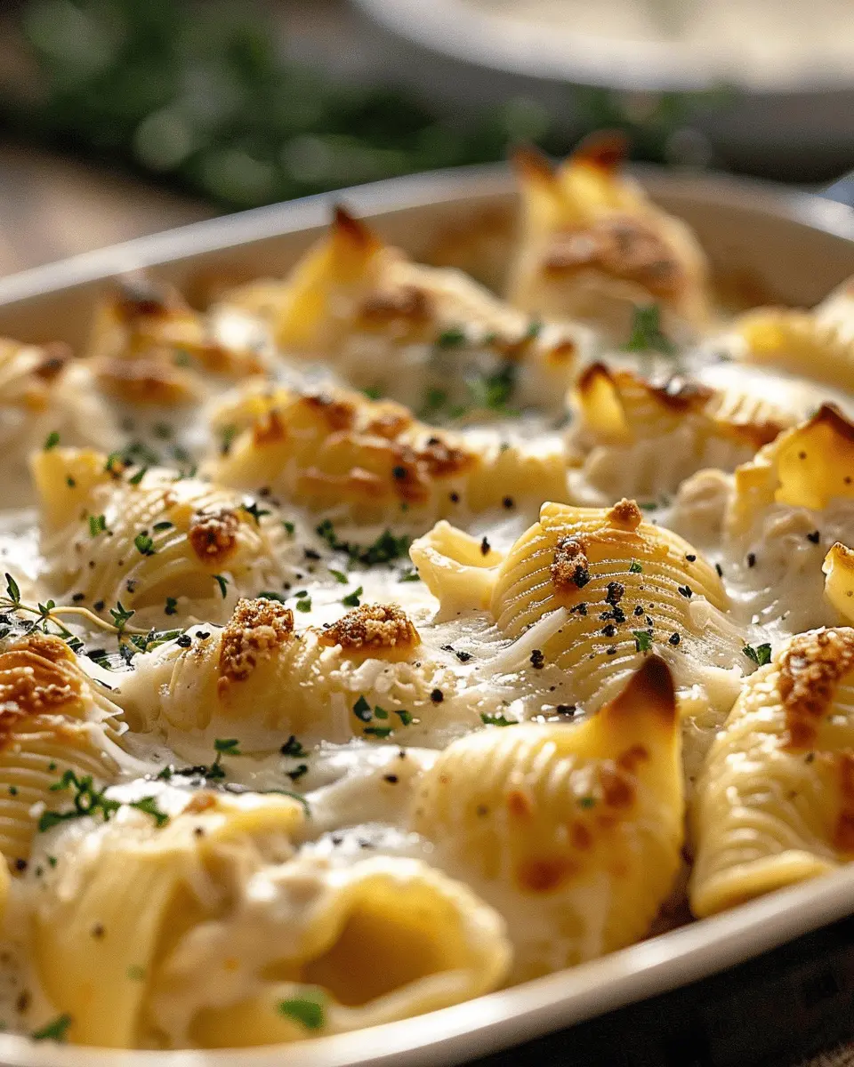 - Tip: Layer your shells with a drizzle of creamy alfredo sauce and sprinkle with Parmesan before baking. This will create a beautiful golden crust, enhancing both texture and taste!