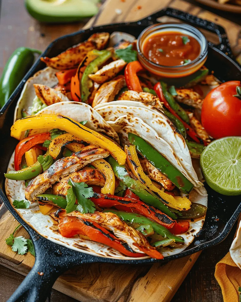 When it comes to tortillas, the choices can make or break your chicken fajitas recipe. Flour tortillas are a popular choice for their softness and ability to hold generous fillings. However, if you’re aiming for a low-carb or gluten-free option, corn tortillas are vibrant and flavorful. Warm them up in a skillet or microwave for a perfect pliable texture. Explore options like whole wheat or spinach tortillas for a nutritional twist!
