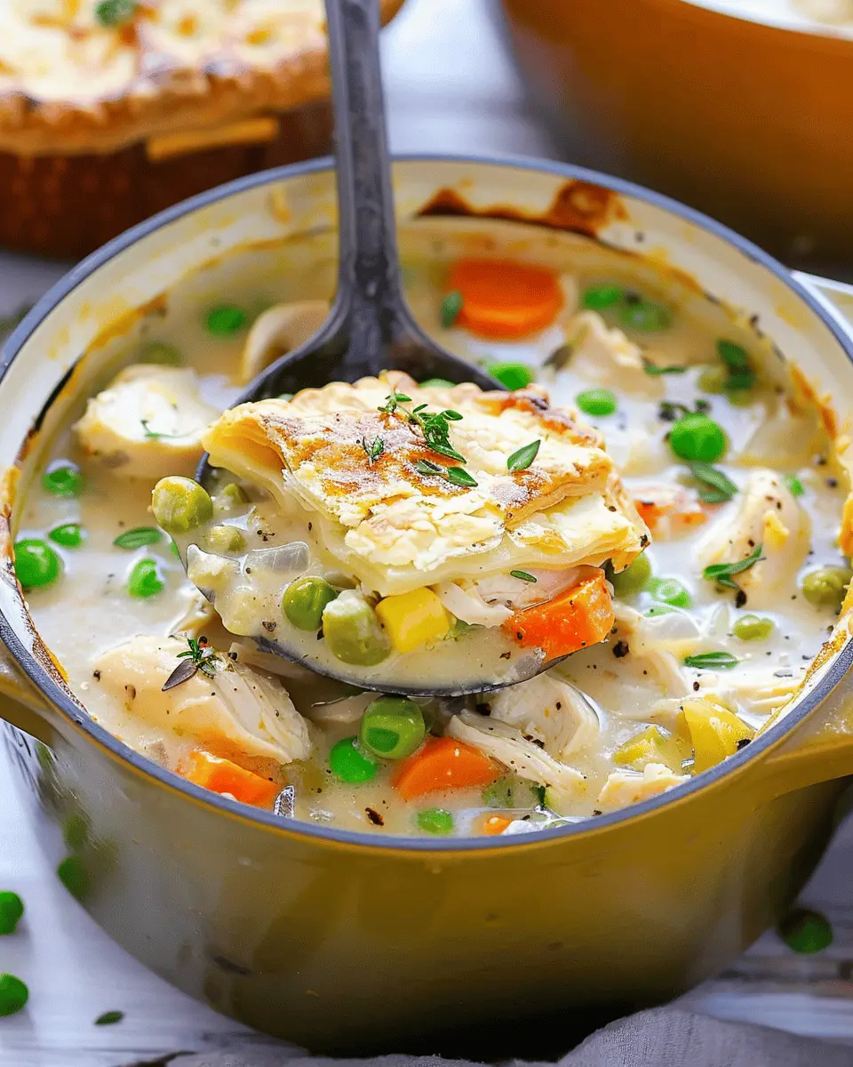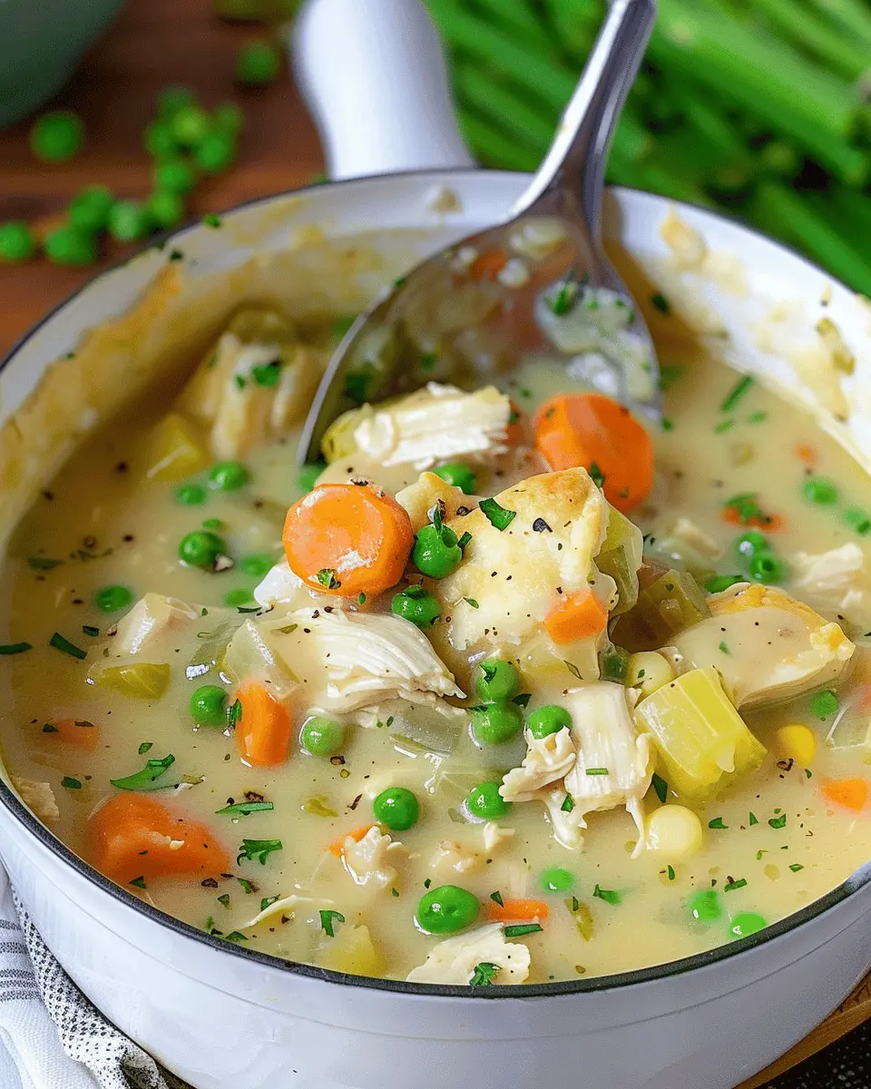 A warm and hearty Chicken Pot Pie Soup that combines the flavors of traditional chicken pot pie with the comfort of a soup.