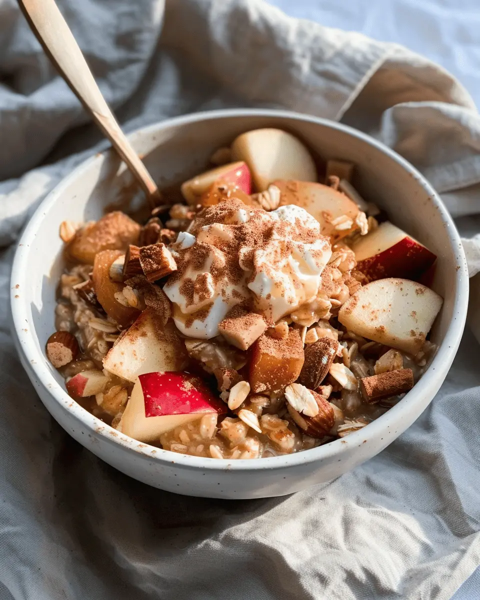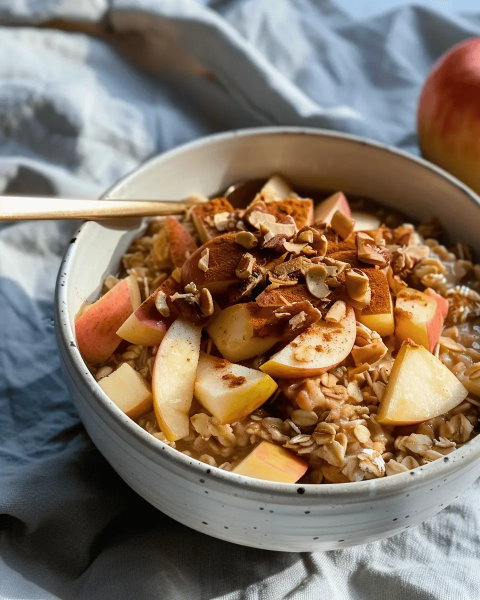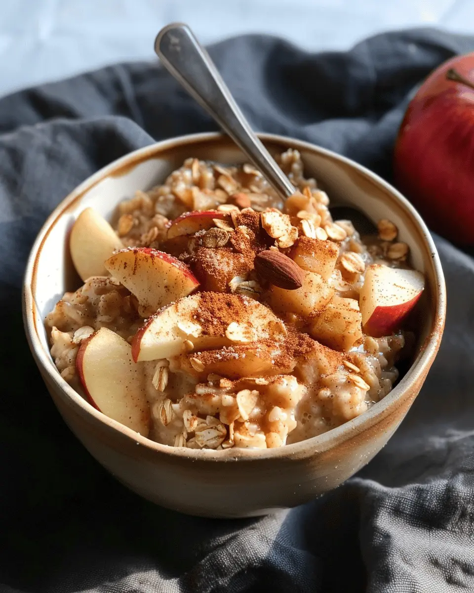 You can whip up this dish in about 5 minutes. All you need to do is grab your ingredients—oats, apples, and a dash of cinnamon, among others. Prepping your toppings, like nuts or additional fruits, can be done while the oatmeal cooks, maximizing efficiency.