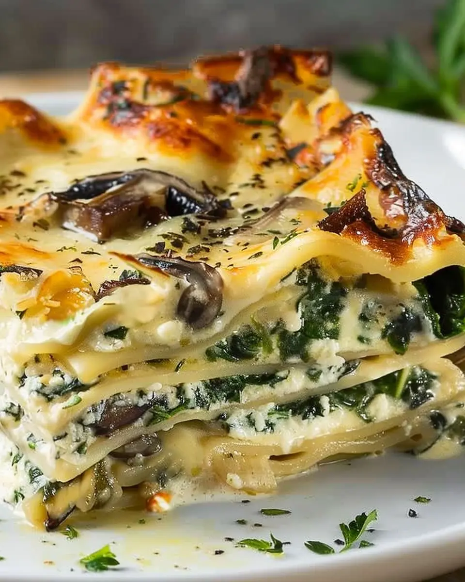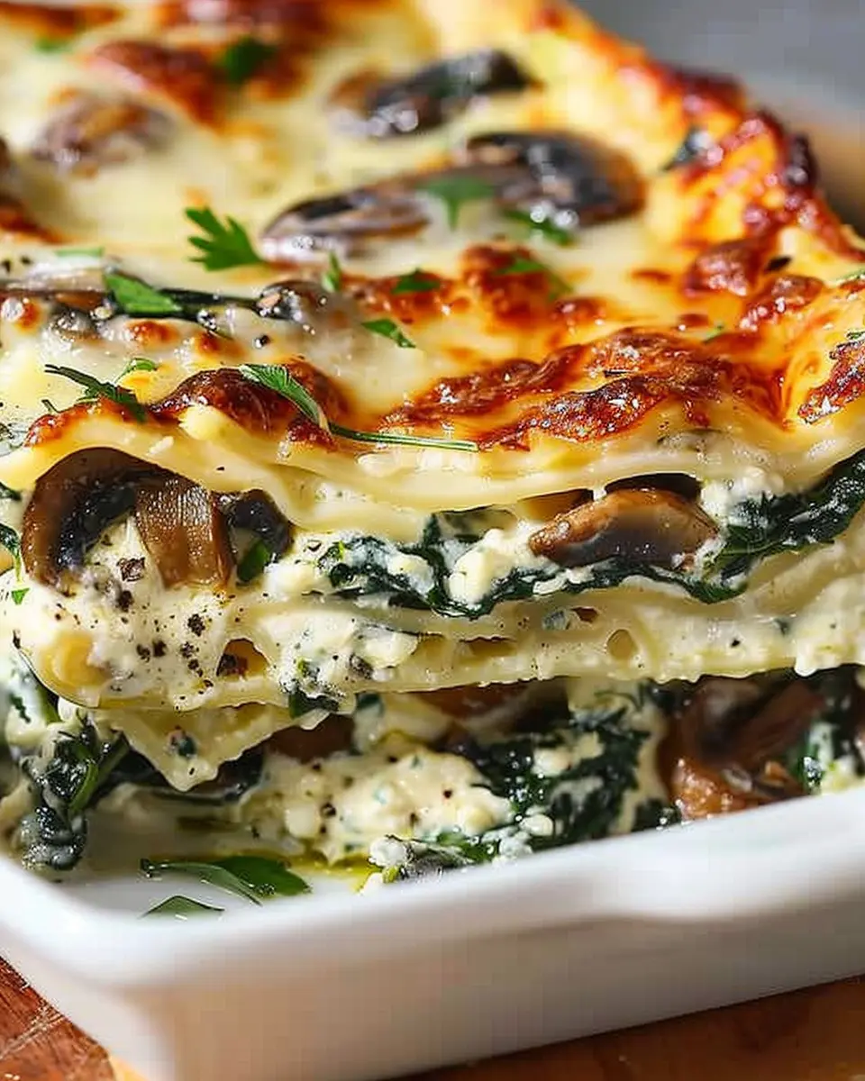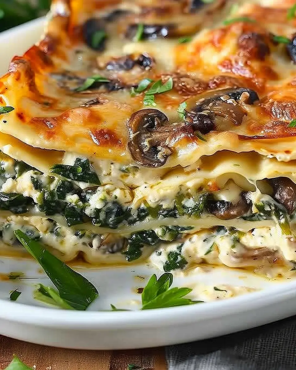 Keywords: Creamy Spinach Mushroom Lasagna, Comfort Food, Vegetarian Lasagna