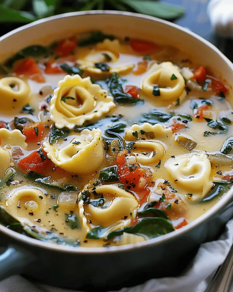 Step-by-Step Preparation of Creamy Tuscan Garlic Tortellini Soup