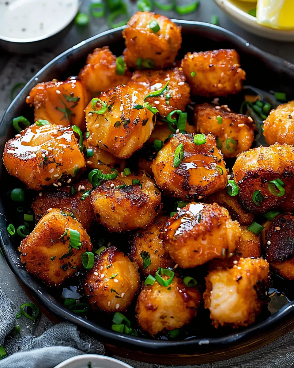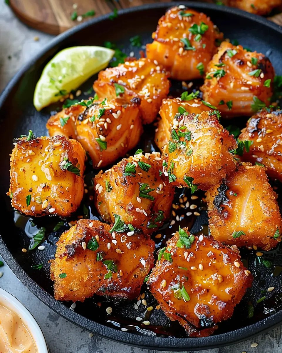 Keywords: Crispy Bang Bang Salmon Bites, easy salmon recipe, indulgent seafood dish