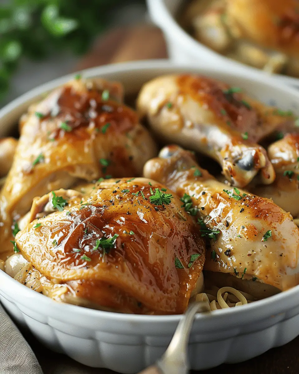 • Creamy Mashed Potatoes: The rich sauce from the chicken pairs beautifully with buttery mashed potatoes, soaking up every bit of flavor.