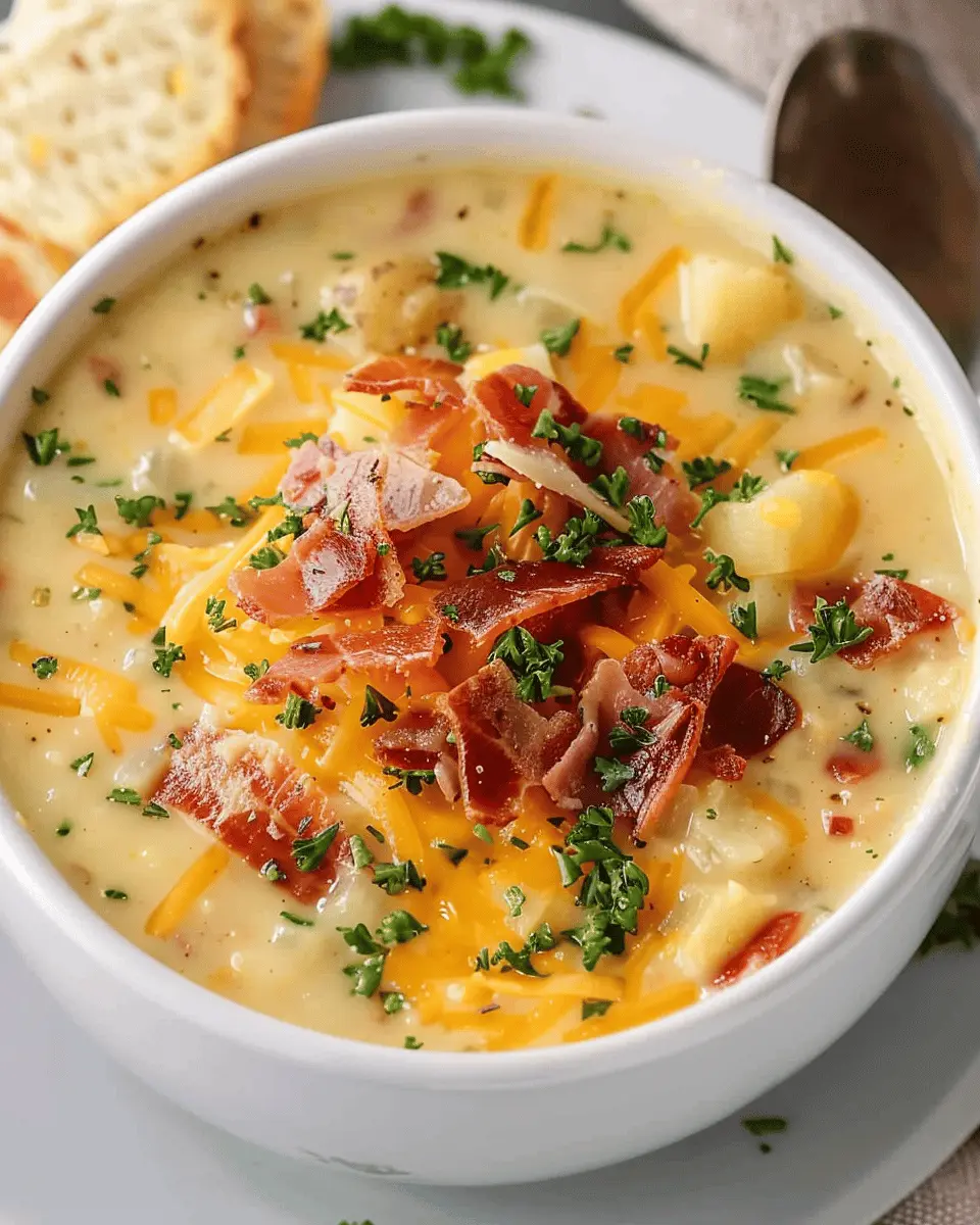 There’s something incredibly comforting about coming home to the aroma of a Crock Pot Loaded Potato Soup simmering away. It makes your house feel like a home. This creamy, hearty soup is packed with flavors from tender potatoes, creamy broth, and the delightful crunch of toppings like Turkey Bacon and Chicken Ham. Each bowl brings back memories of cozy nights spent with family or friends, making it more than just a meal—it’s an experience.