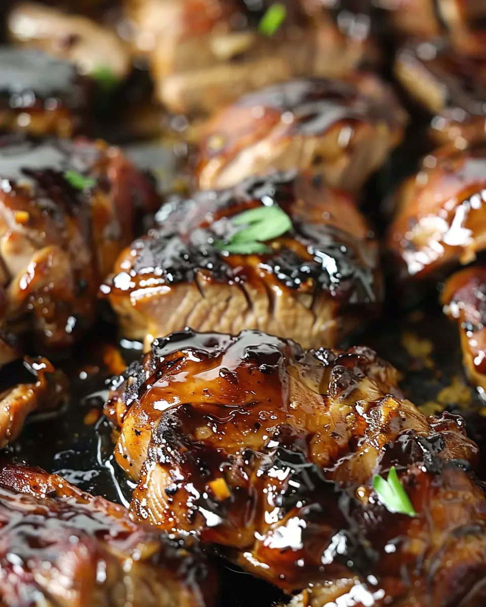 A flavorful and easy recipe for deliciously tender pork tenderloin glazed with a sweet and tangy brown sugar balsamic sauce.