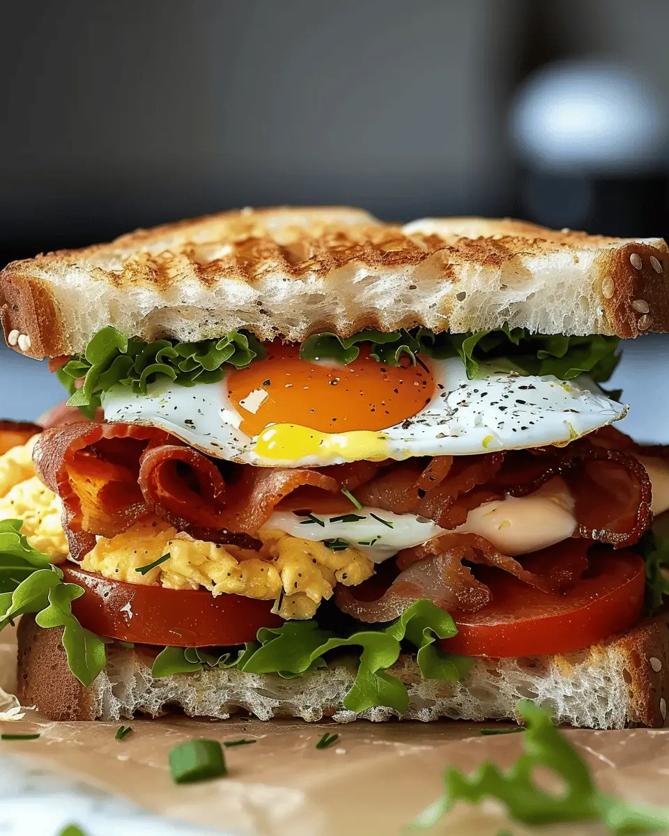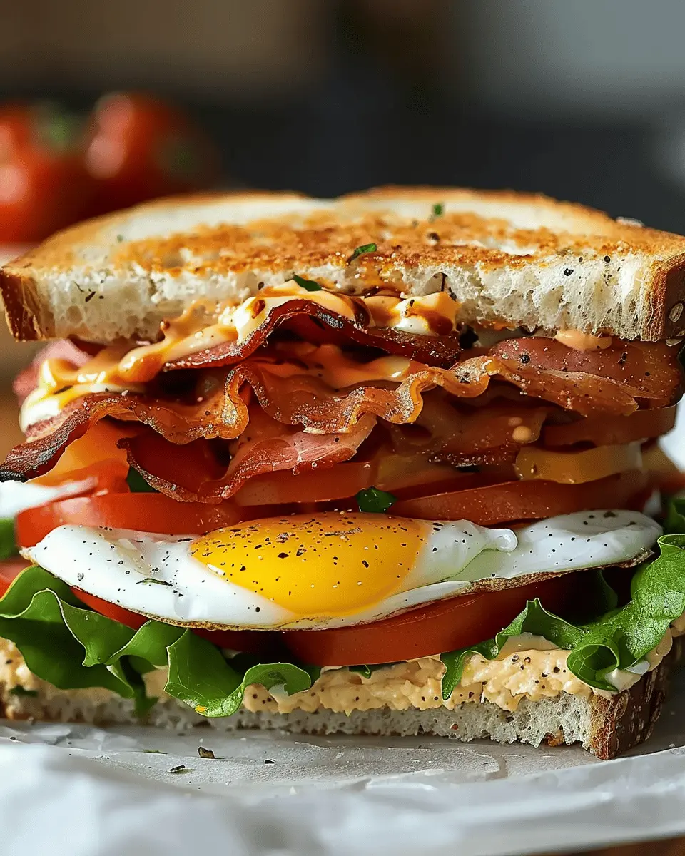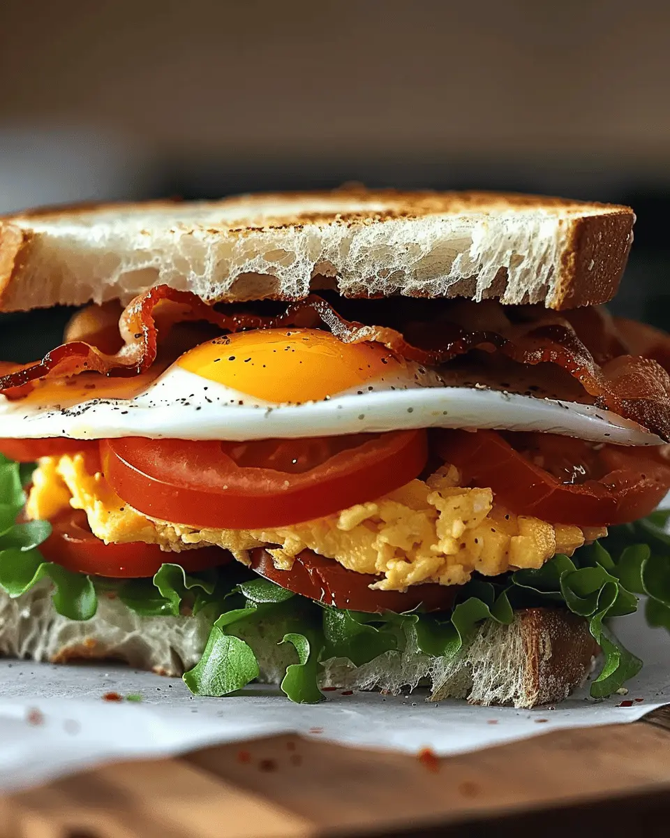 Voilà! Du hast nun dein perfektes Bacon, Egg und Tomaten Sandwich kreiert – herzhaft, geschmackvoll und einfach unwiderstehlich. Lass es dir schmecken!