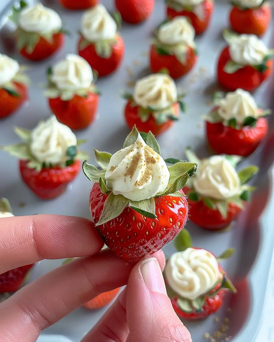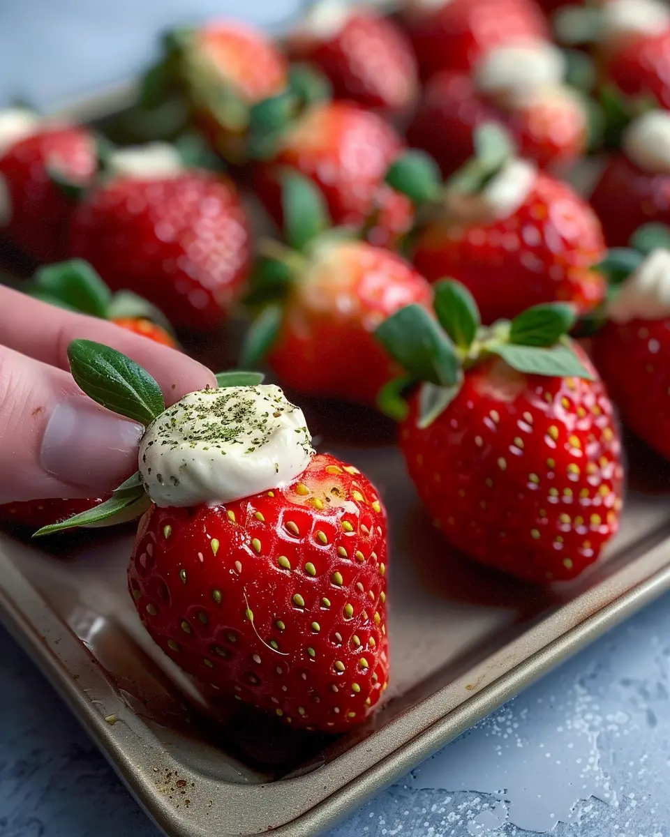 - Garnish: Decorate each stuffed strawberry with a sprinkle of chopped nuts, chocolate shavings, or a tiny basil leaf. These little additions make a big difference in presentation!
