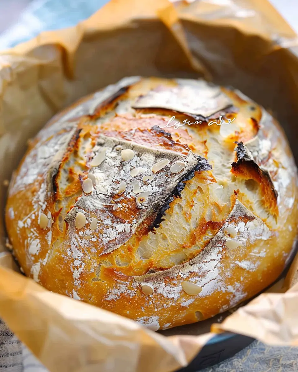 You’ll be amazed at how this simple blend of ingredients transforms into a crusty, artisanal loaf! What’s your favorite way to enjoy fresh bread?