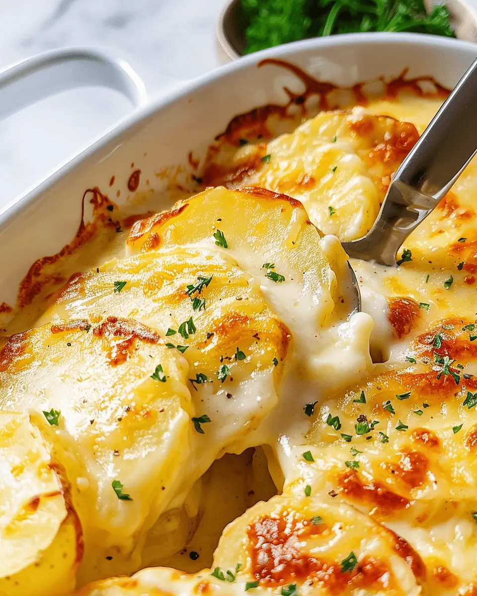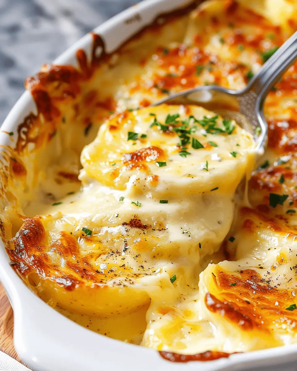 You’ll know it’s ready when you can easily pierce a potato with a fork, and the top is irresistibly crispy. Let it cool for a few minutes before serving, allowing those cheesy layers to settle. Garnish with chopped parsley, and you’re set for a cheesy explosion of flavor!