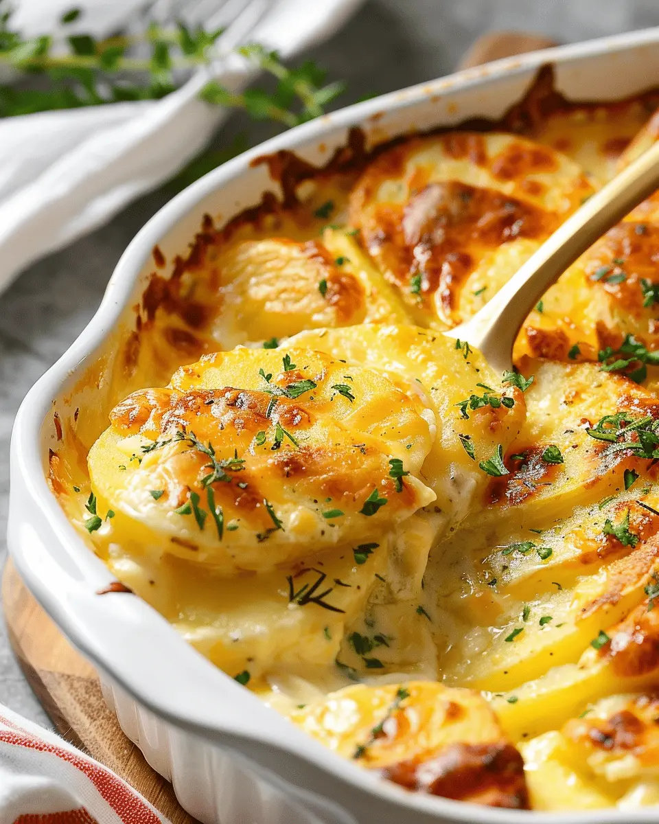 In summary, easy cheesy scalloped potatoes are a delightful dish that’s perfect for any occasion—be it a cozy family dinner or a festive gathering. The rich, creamy layers of potatoes combined with melty cheese create a comfort food experience that’s hard to resist. Plus, you can easily customize the recipe with additions like Turkey Bacon or Chicken Ham for extra flavor.