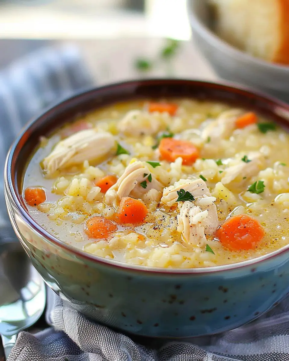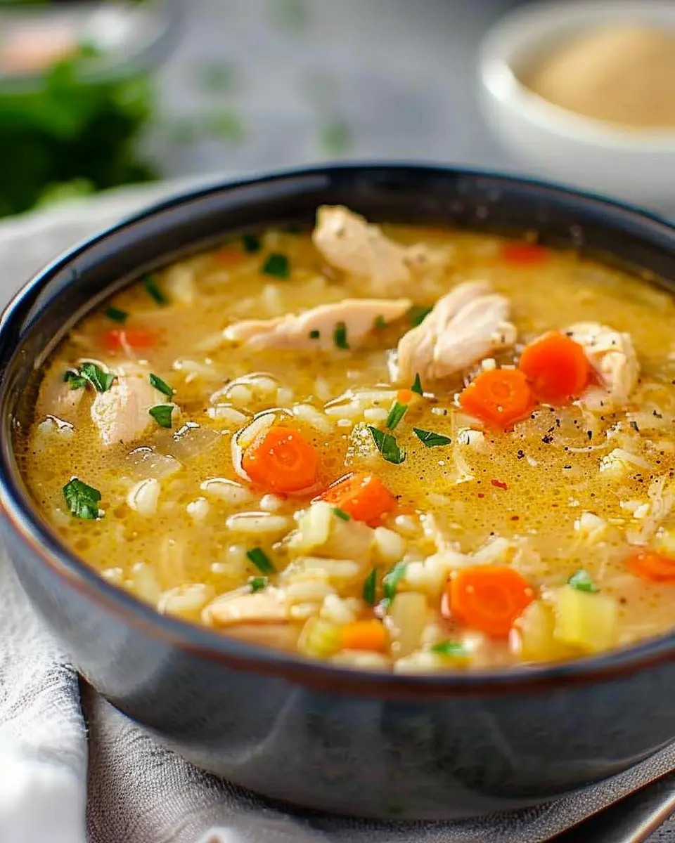 Enjoy a warm bowl of Easy Chicken and Rice Soup, a satisfying dish perfect for chilly days.