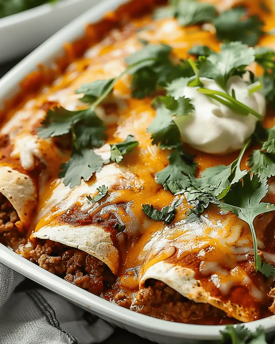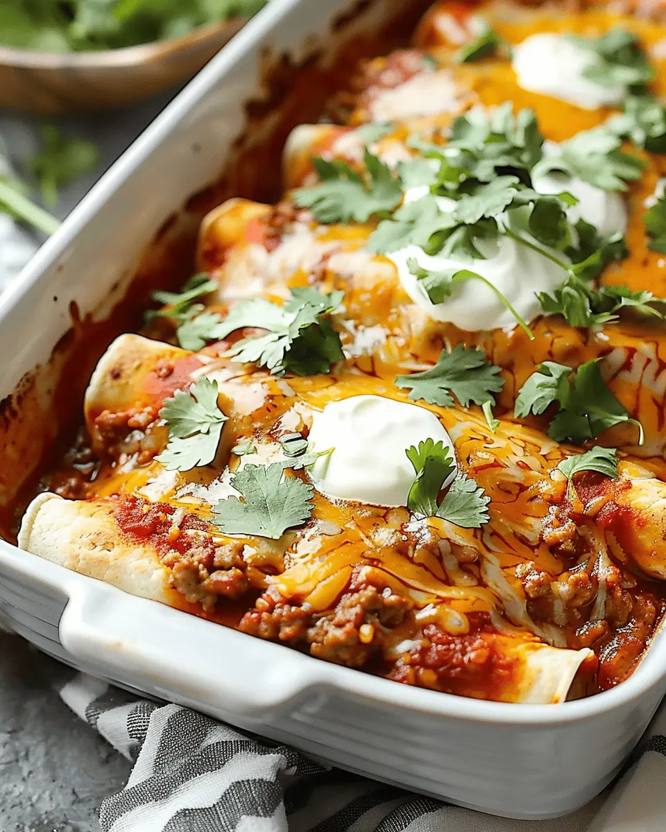 If you’re a fan of heat, try adding chipotle peppers in adobo sauce to your beef mixture. The result? A smoky, spicy kick that elevates your easy ground beef enchiladas to a whole new level.