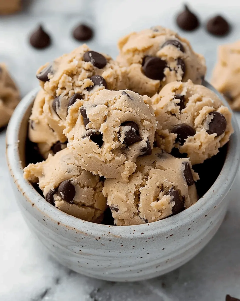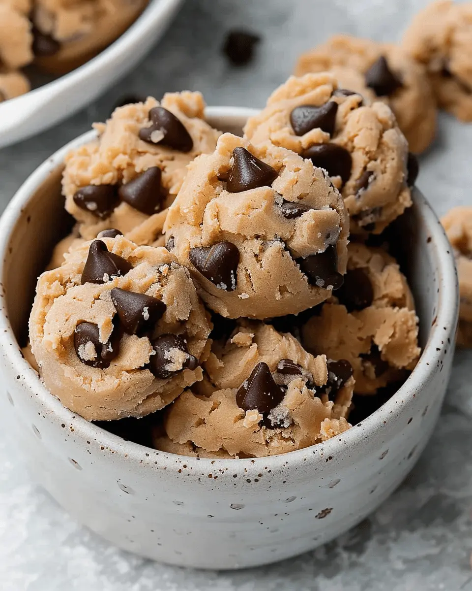 • Chocolate Chips: Because what’s cookie dough without a bit of chocolate? Dark or dairy-free chips can add that satisfying crunch.