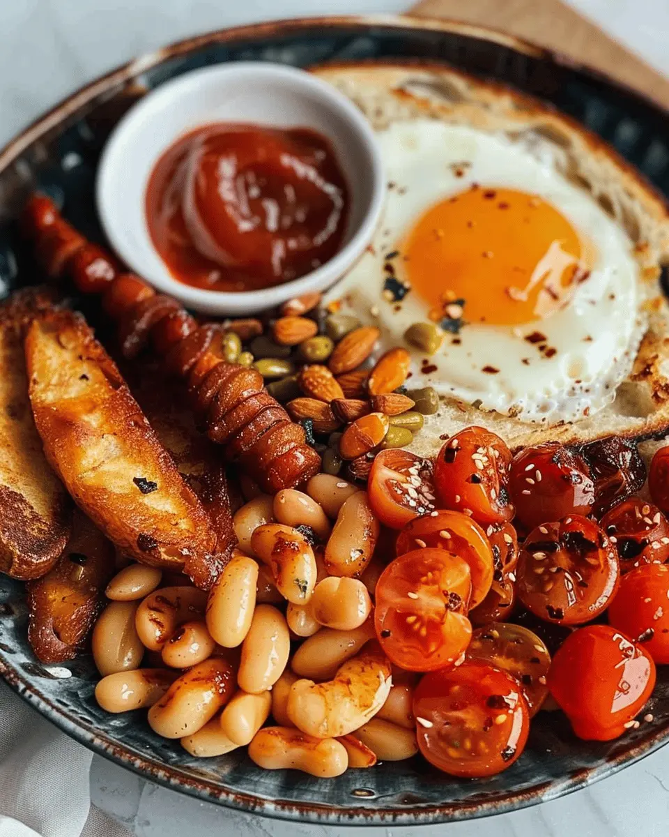 Feel free to add a sprinkle of black pepper or a dash of hot sauce for an extra kick. Don’t forget to share your creation on social media—after all, a full English breakfast is as much about taste as it is about presentation!