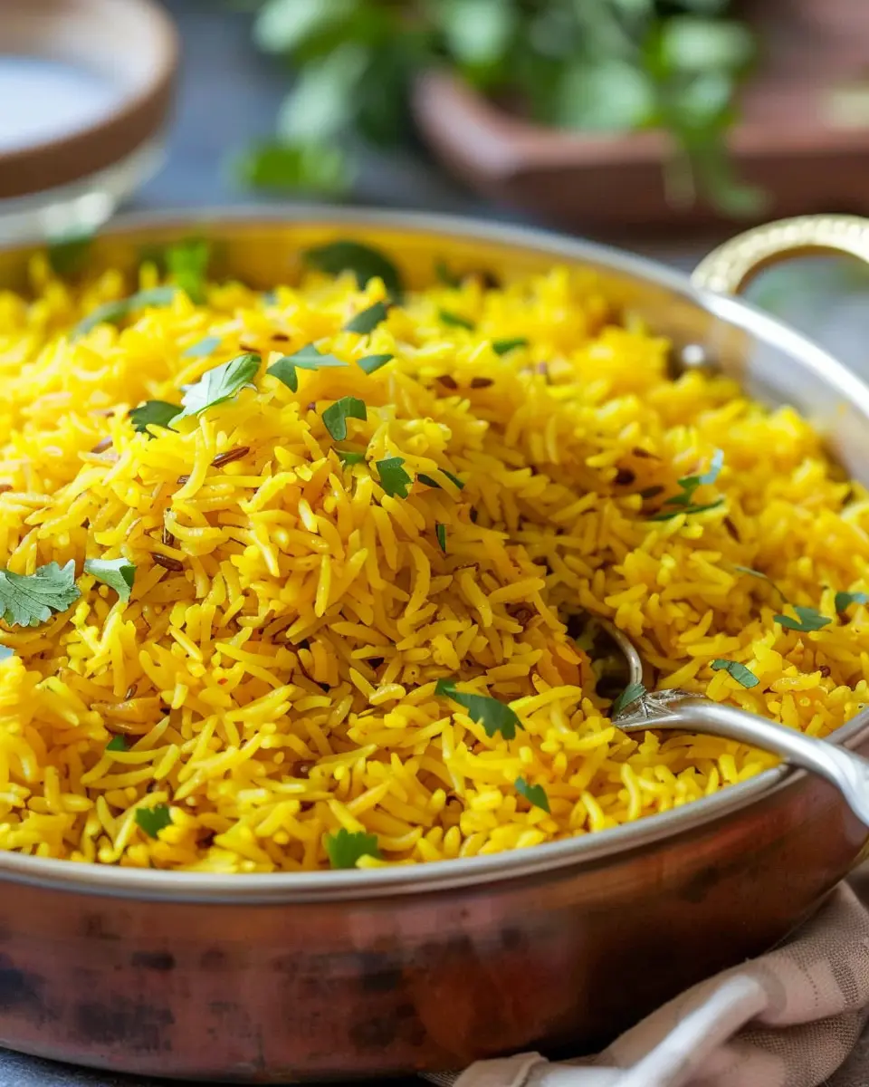 - 1 teaspoon of turmeric powder – the star ingredient that gives the rice its stunning color.
