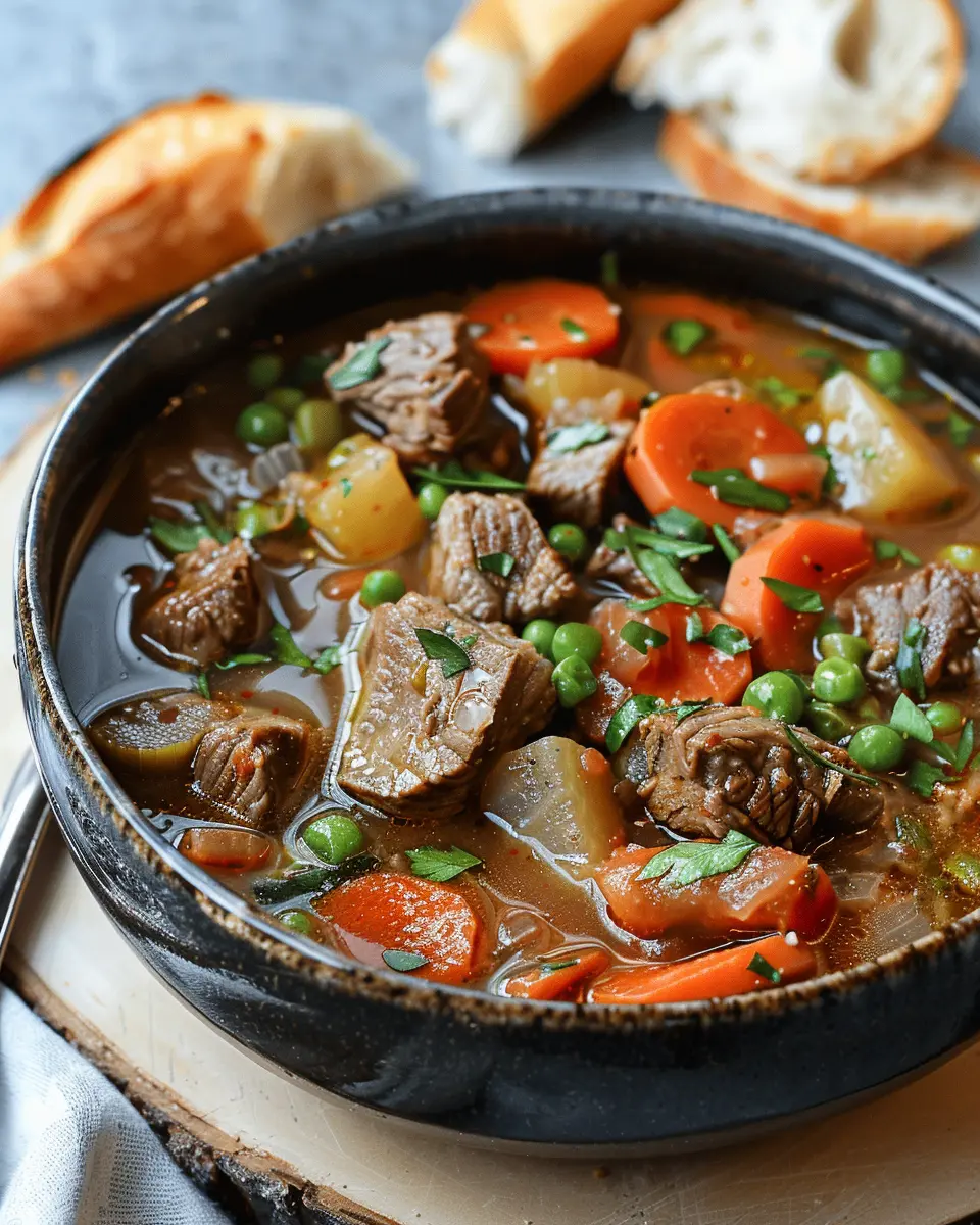Serve this comforting hearty beef and vegetable soup with a crusty loaf of bread or a simple green salad. As you gather with friends or family around the table, relish the warmth of the soup and the moments shared. Enjoy your culinary success!