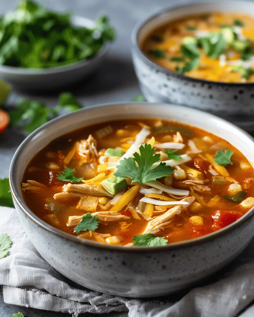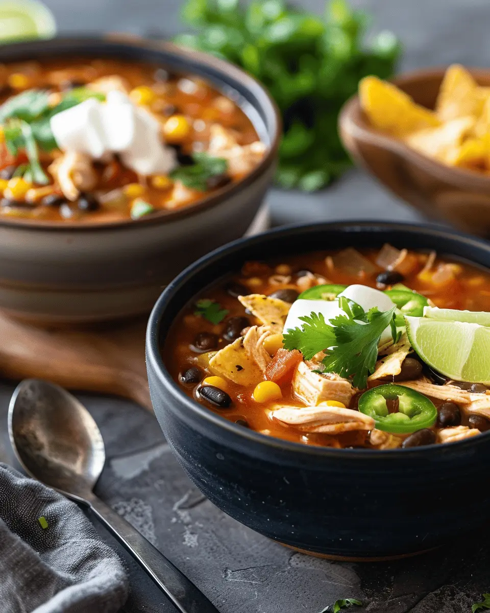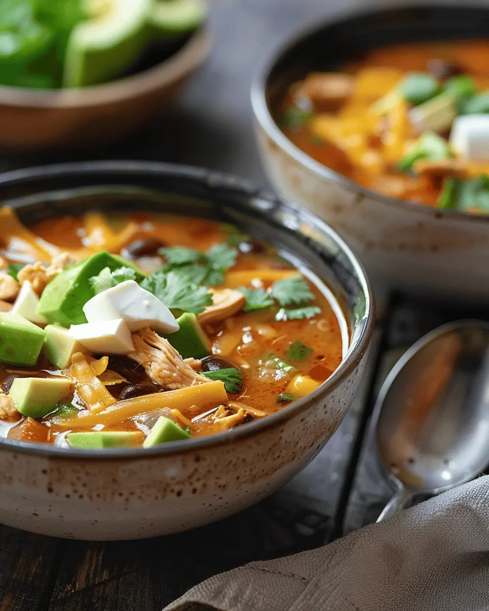 Enjoy a warm bowl of Hearty Chicken Tortilla Soup, perfect for chilly days.