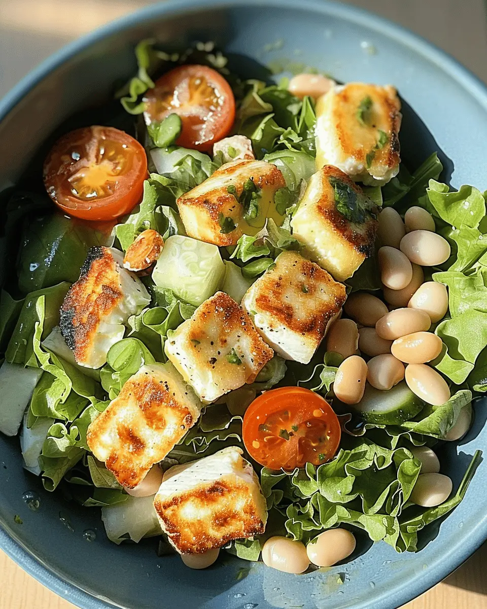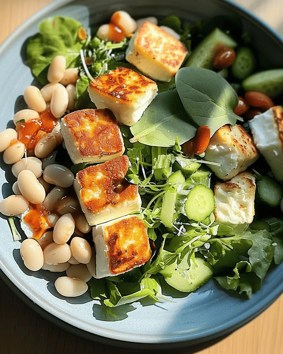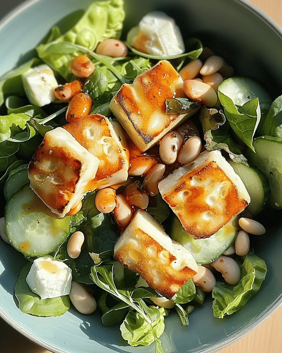 Honey-Glazed Halloumi Salad: Indulgent White Bean Bliss with Herbs