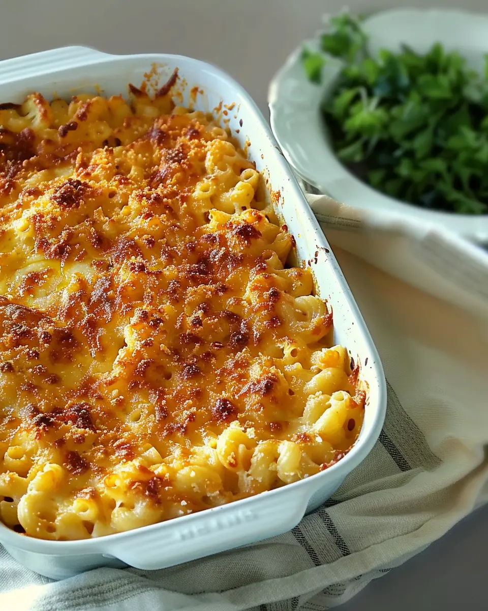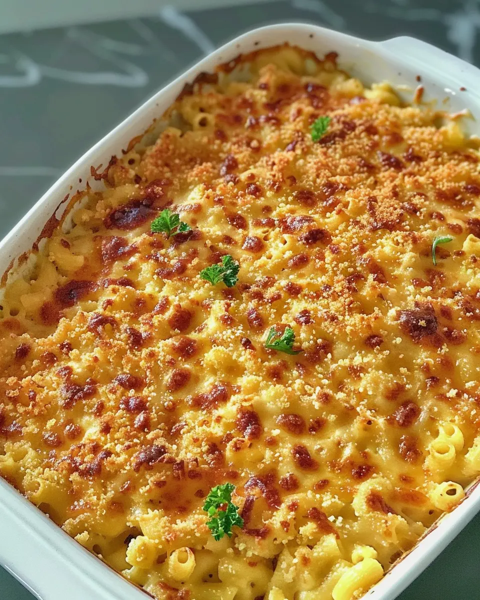 Indulge in the creamy, cheesy goodness of John Legend’s Macaroni and Cheese, enhanced with crispy turkey bacon.