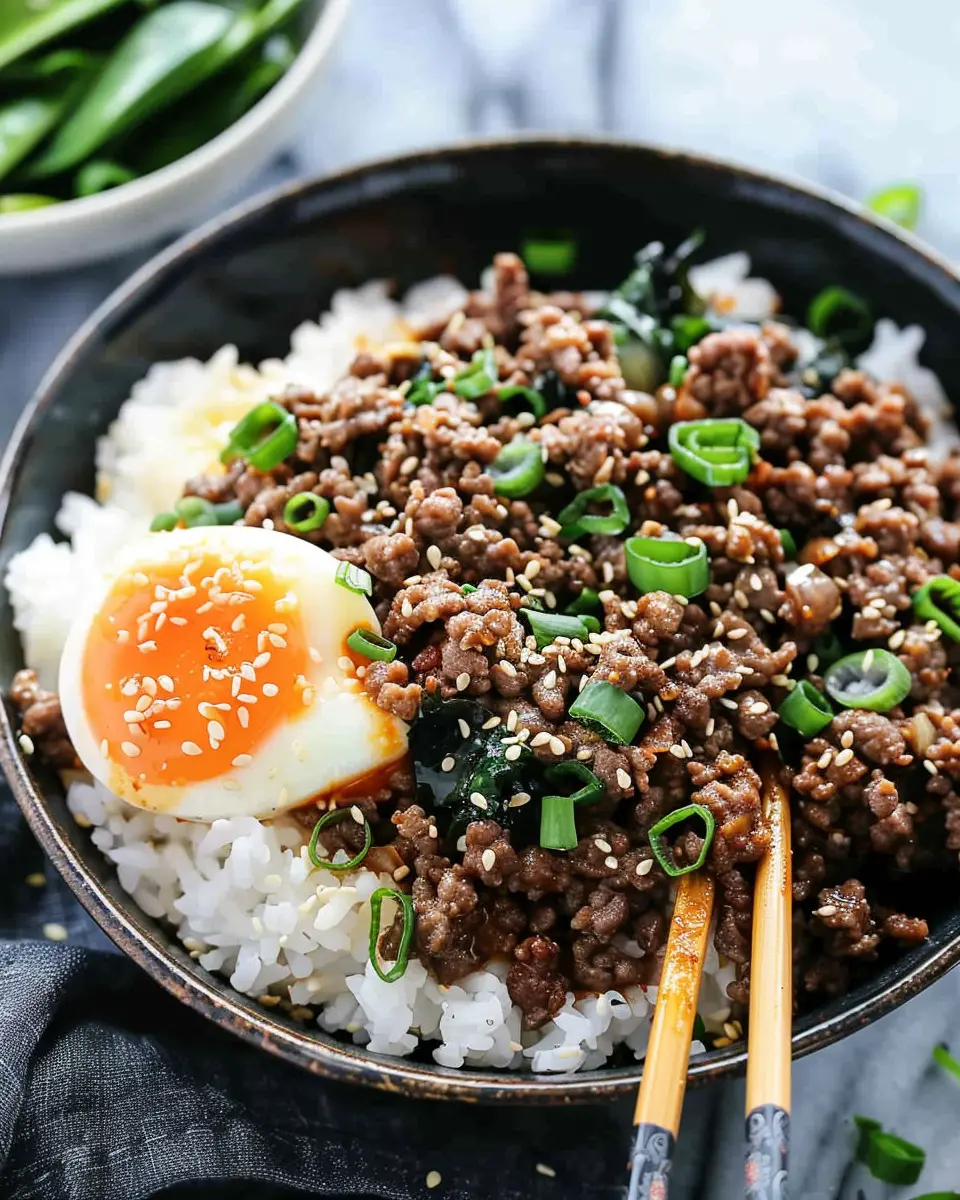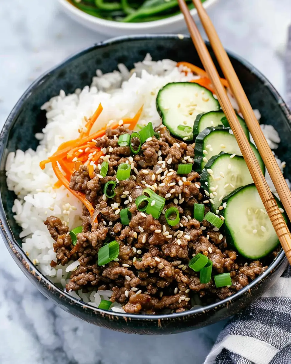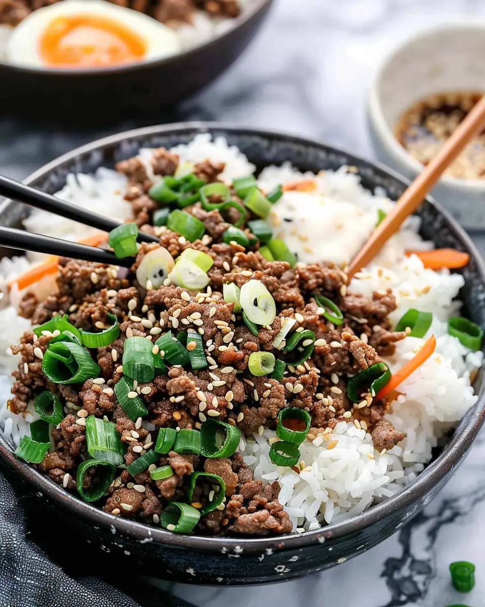 A delicious and easy recipe for Korean Ground Beef and Rice Bowls that brings savory comfort to your dinner table.