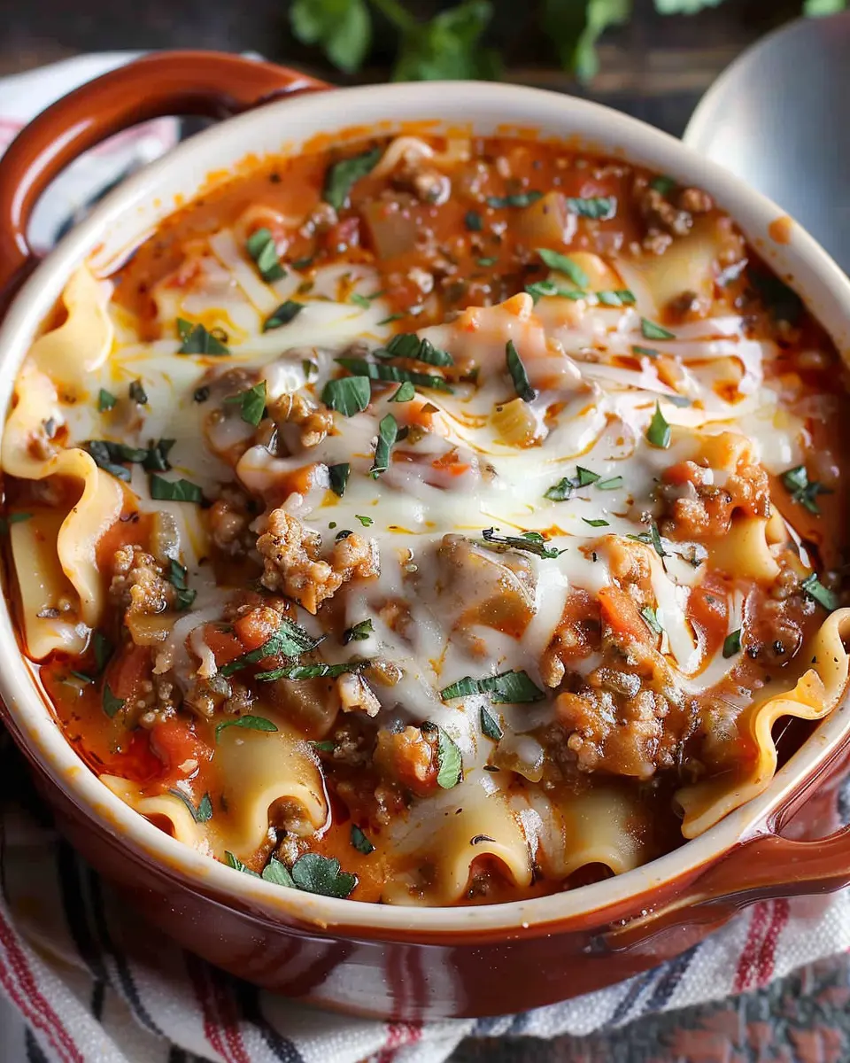 Moreover, this lasagna soup recipe can be customized to fit your taste and dietary preferences. Want a kick? Toss in some spicy Italian turkey sausage instead of classic beef. Prefer a vegetarian twist? Swap out meat for seasonal vegetables or lentils. This level of adaptability makes it perfect for busy professionals who might also be experimenting with their diets.