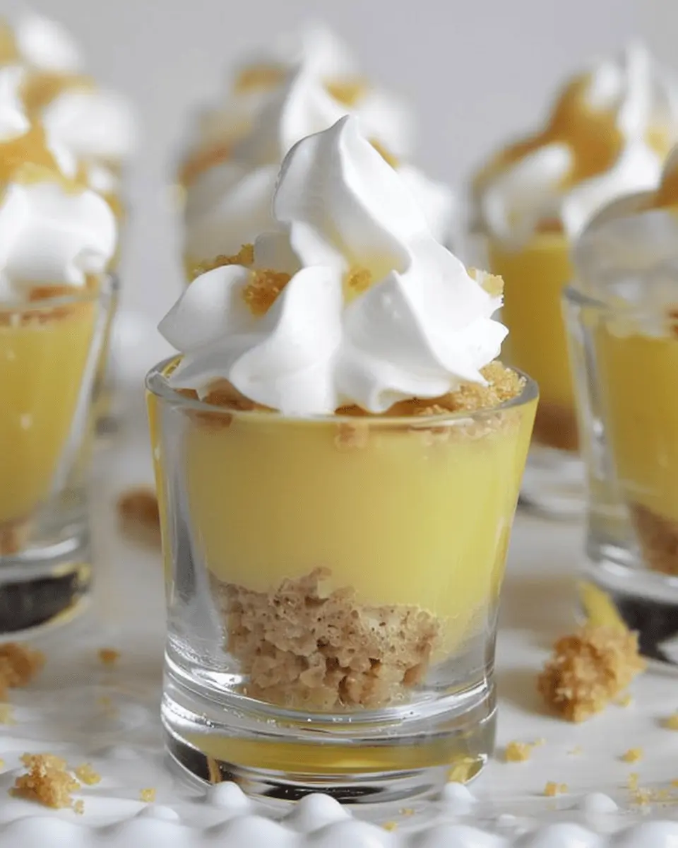 Indulge in these delightful Lemon Meringue Pie Shooters that combine the tartness of lemons with the sweetness of meringue, all served in convenient glasses for a perfect treat.