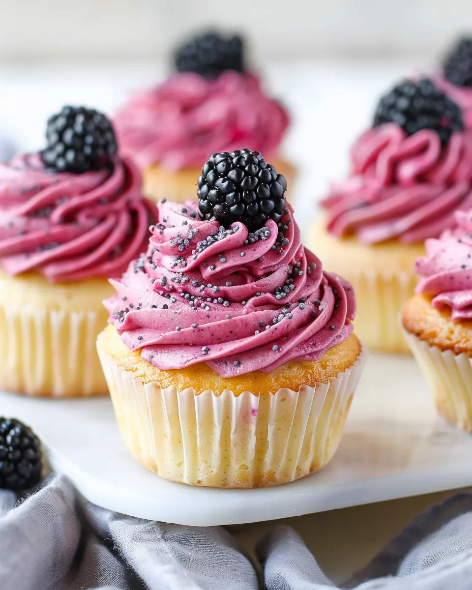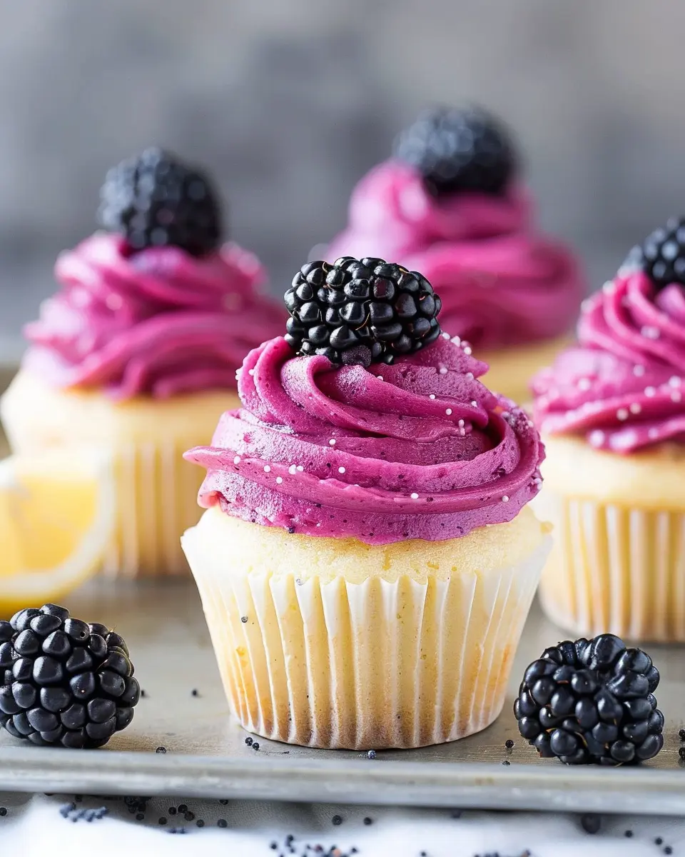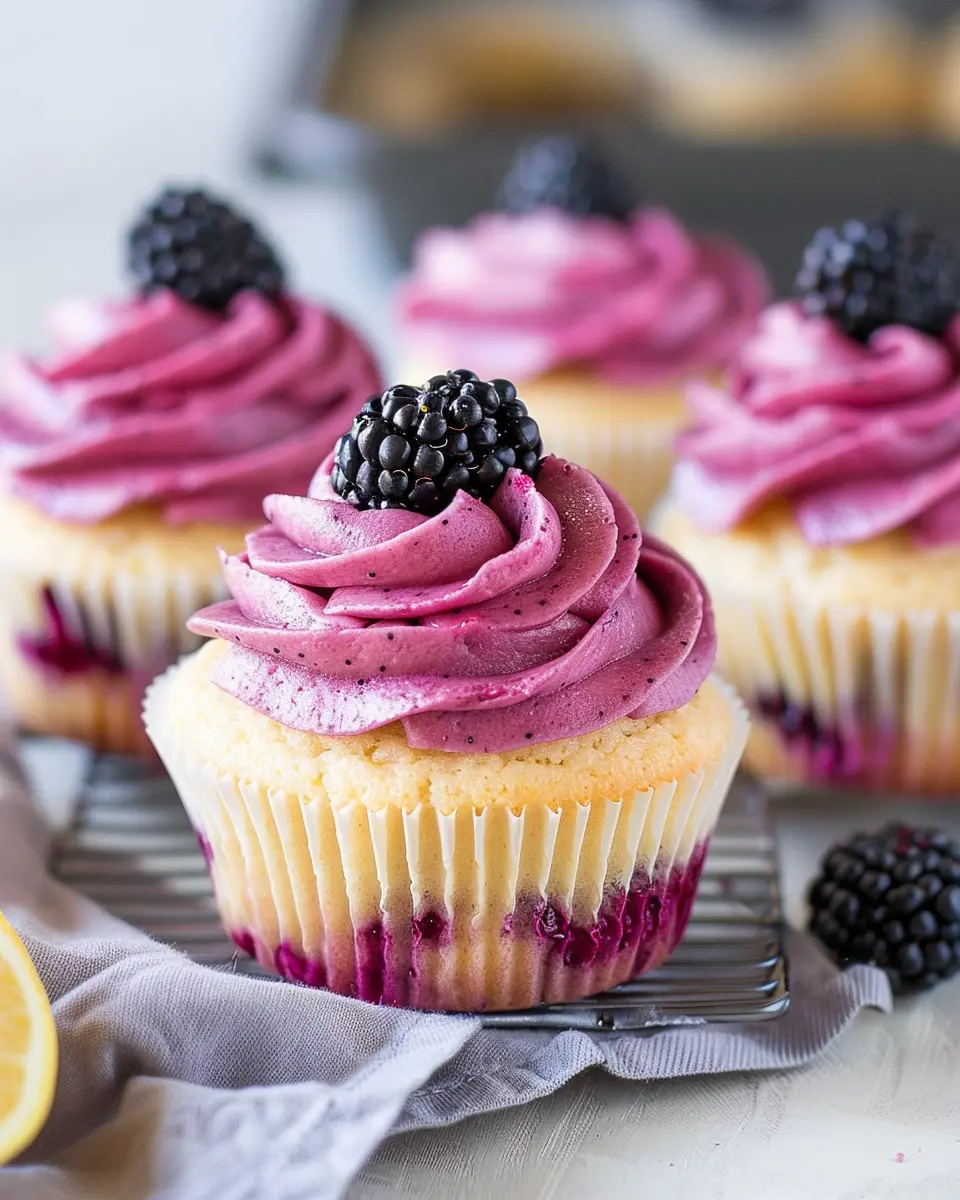 Lemon Poppy Seed Cupcakes with Blackberry Frosting are a delightful treat that combines the bright flavors of lemon with the nutty crunch of poppy seeds, all topped with a luscious blackberry frosting.