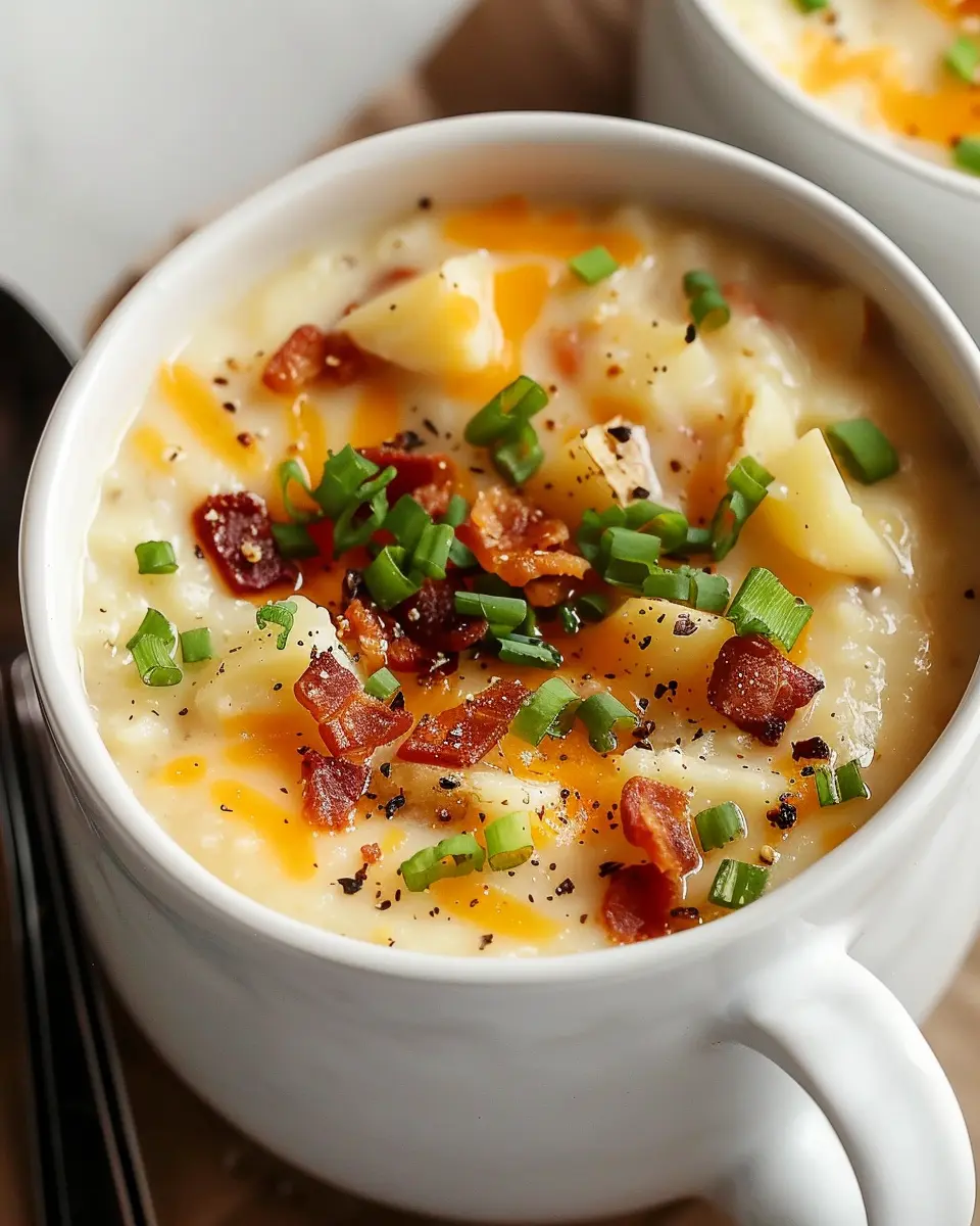 The beauty of loaded potato soup lies in its simplicity. At its core, the recipe features creamy potatoes, rich broth, and a medley of delicious toppings that can be customized to your heart’s desire. Imagine descending into a bowl of velvety goodness, topped with crispy turkey bacon, creamy cheese, and a sprinkle of green onions. Doesn’t that sound delicious?