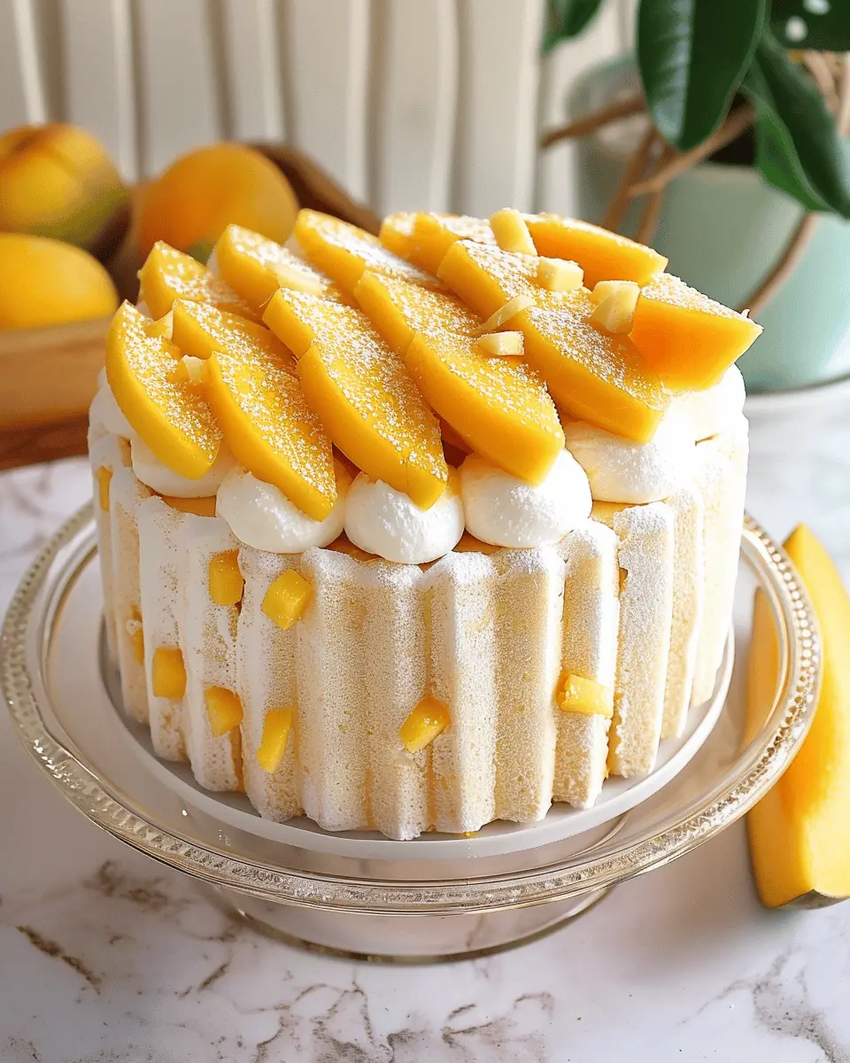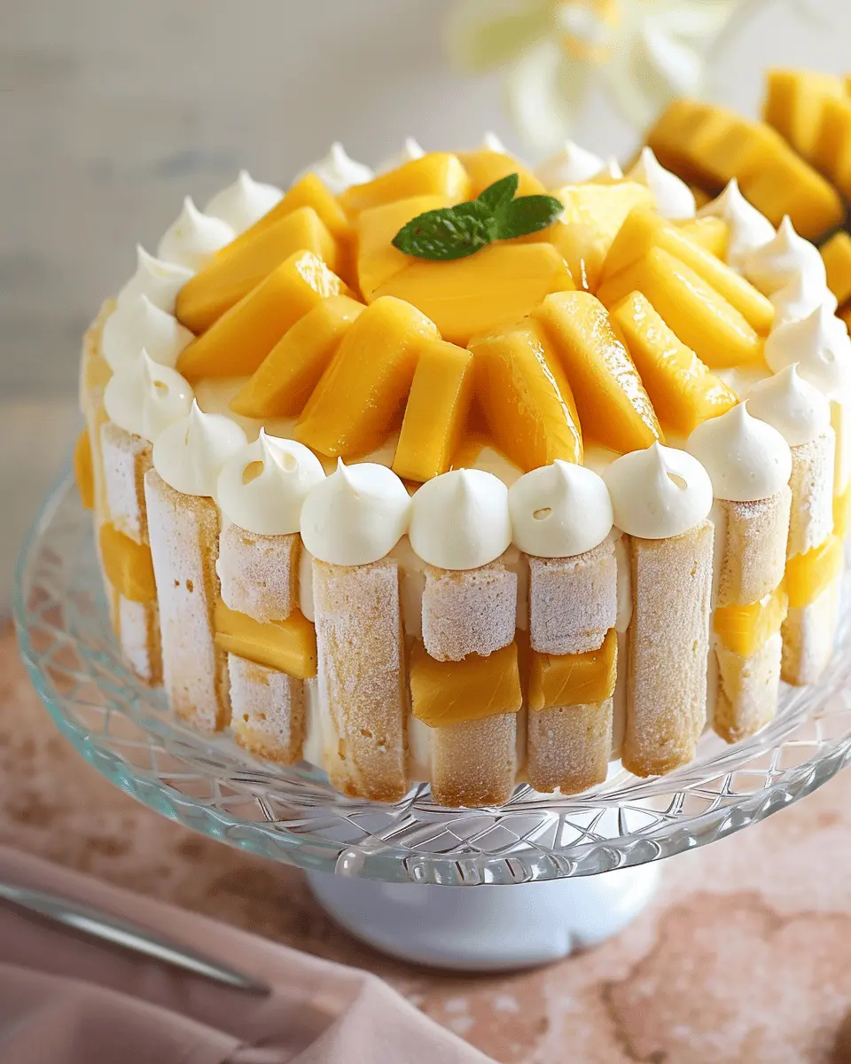 Mango Charlotte Cake is a delightful dessert that combines the creaminess of mousse with the fresh taste of mango, perfect for any occasion.