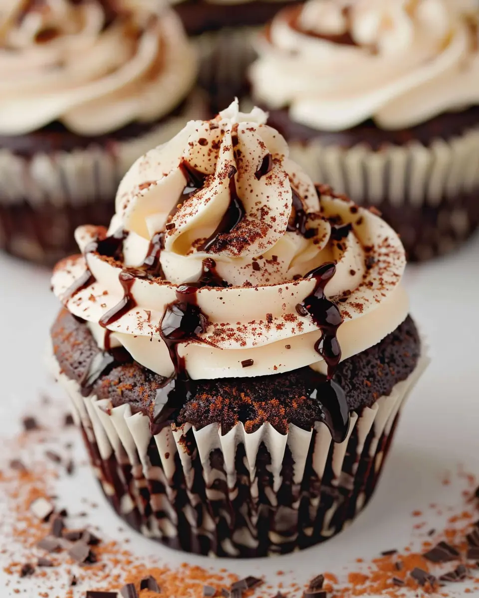 Deliciously rich and moist mudslide cupcakes topped with a creamy Baileys frosting, perfect for any chocolate lover.