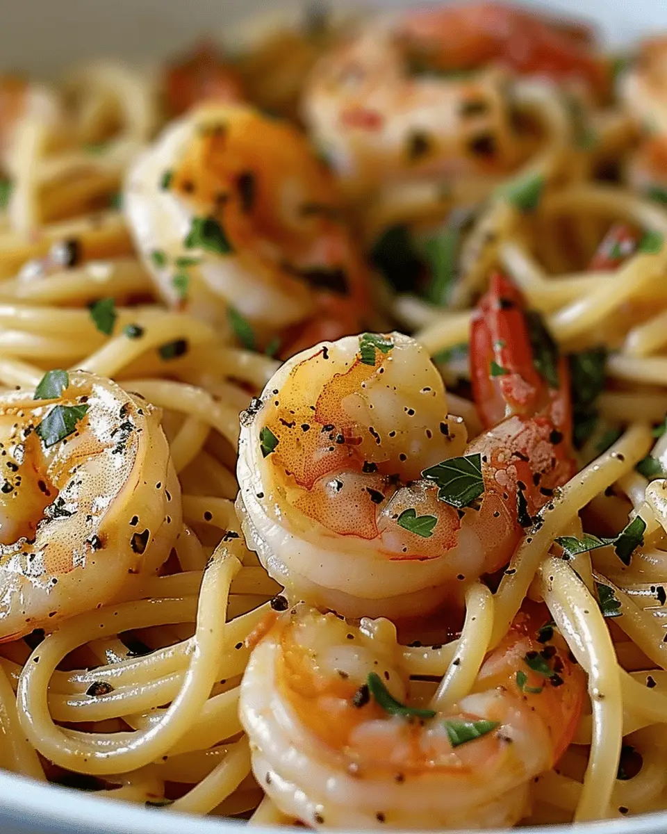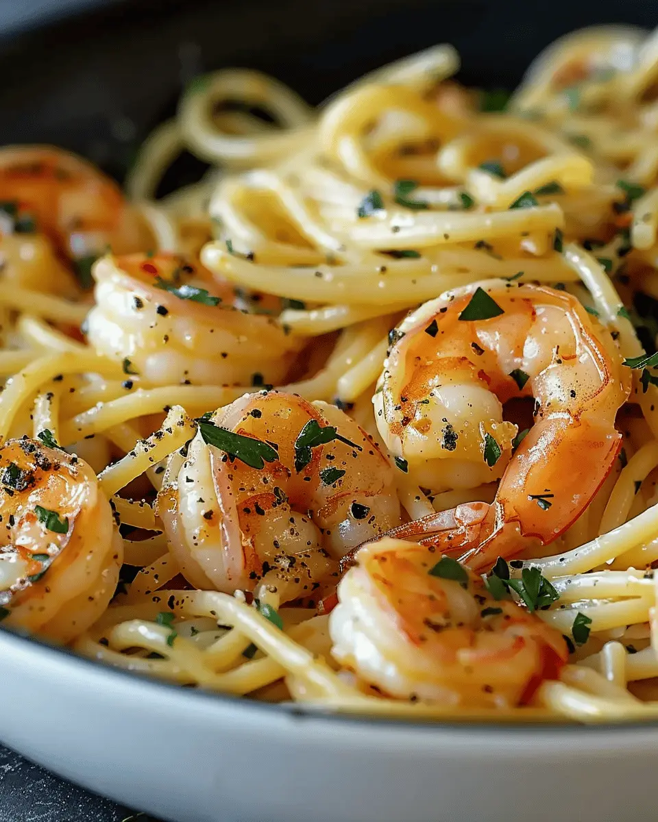 A delicious one-pot recipe that combines shrimp, garlic, and butter with pasta for a comforting meal.