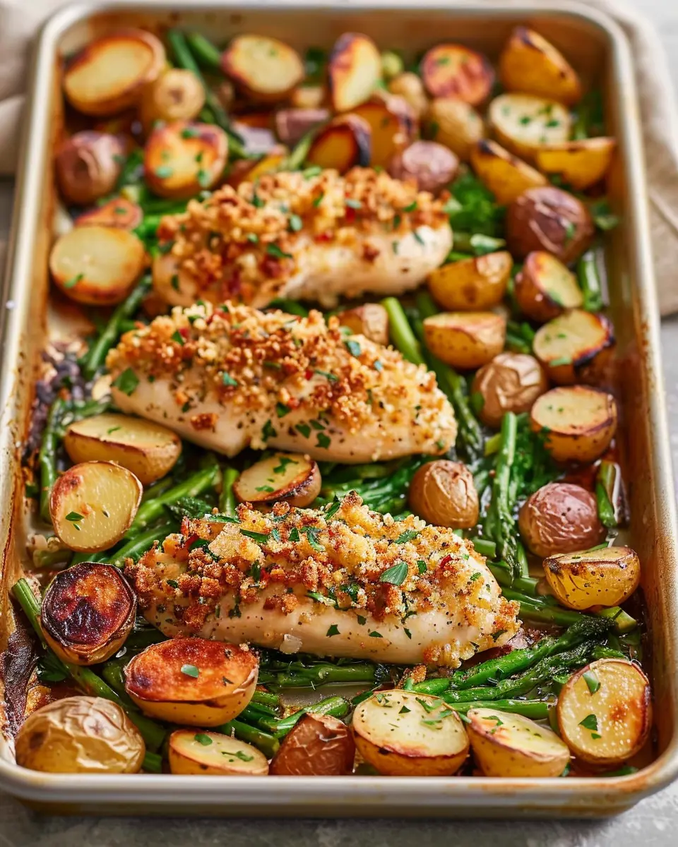 Experience the delightful blend of flavors in this Parmesan Crusted Chicken Sheet Pan Dinner, perfect for a quick weeknight meal.