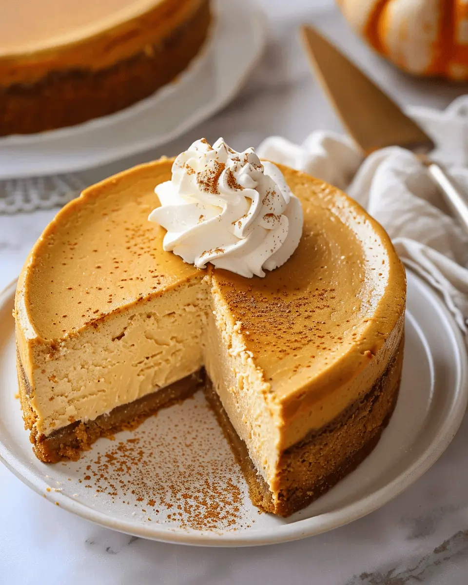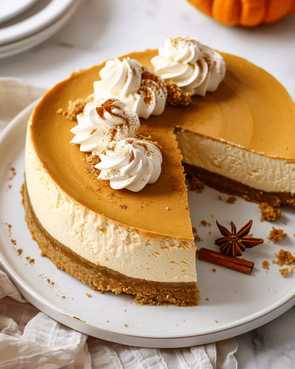 Versatility: From Thanksgiving feasts to casual get-togethers, Pumpkin Cheesecake can be the star of any occasion. You can even experiment with the crust—try using crushed graham crackers, gingersnap cookies, or pecans for an added crunch and flavor depth.