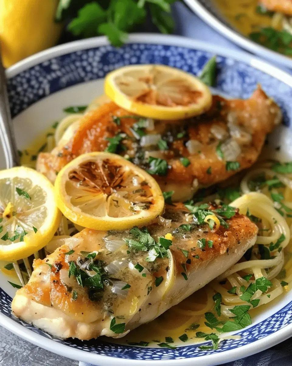 Now, let’s not forget the star of the show—the lemon sauce! This sauce drapes the chicken in delightful flavor: