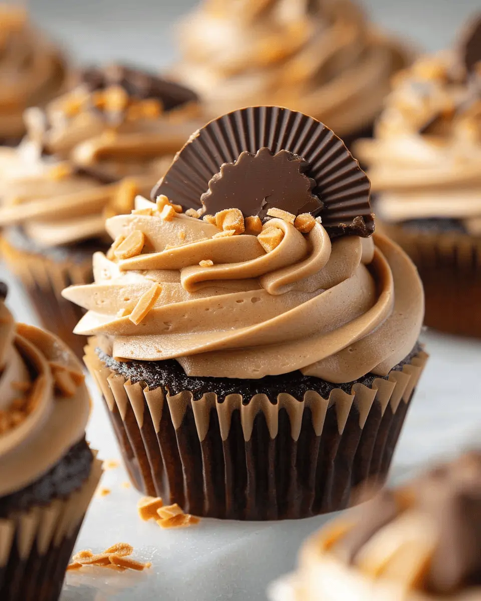 - Garnish: Top each cupcake with a mini Reese’s Peanut Butter Cup for that signature finish.