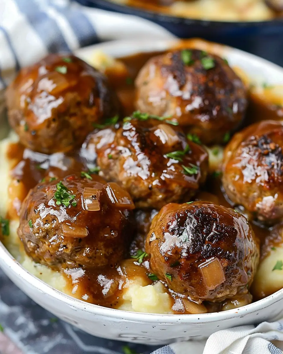 A delicious and easy recipe for Salisbury steak meatballs made in a slow cooker, perfect for a comforting meal.
